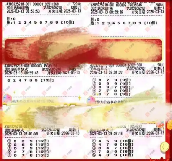 本票不是本人购买 在某个音频里看到的 仅供大家参考,她是守号 每天都买 大家不要盲目下单这个号是福彩超限号 中奖率是百分之百,绝对没有不会开这个组合 2026年3月13号