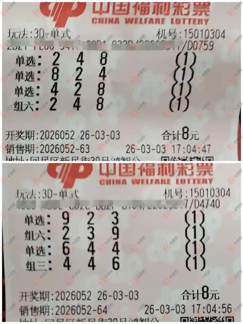 3D5000w大派奖‼️单票金额需🈵 12元⚠️ 固定派奖🌷🌷 💥单选可中:1040+460=1500元 🔥组三可中:346+134=480元 🎉组六可中:173+67=240元;趁着活动中起来✊多组实票参考,可参与💪💪