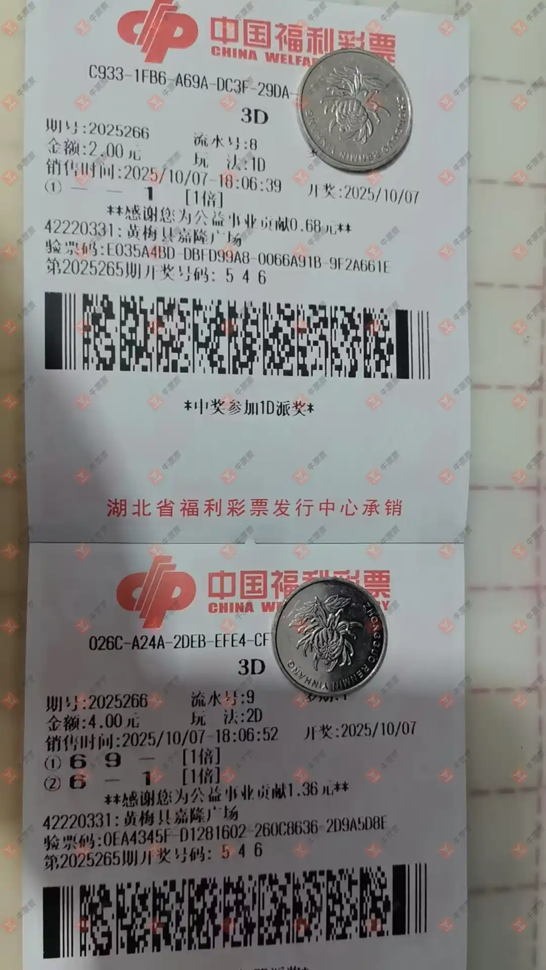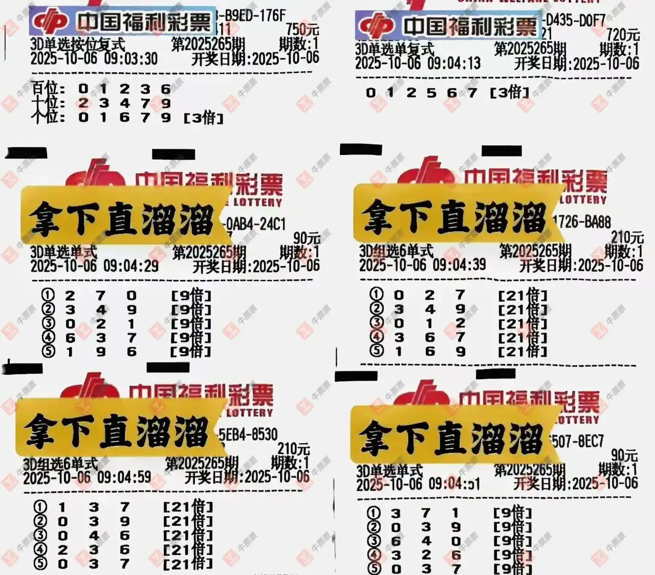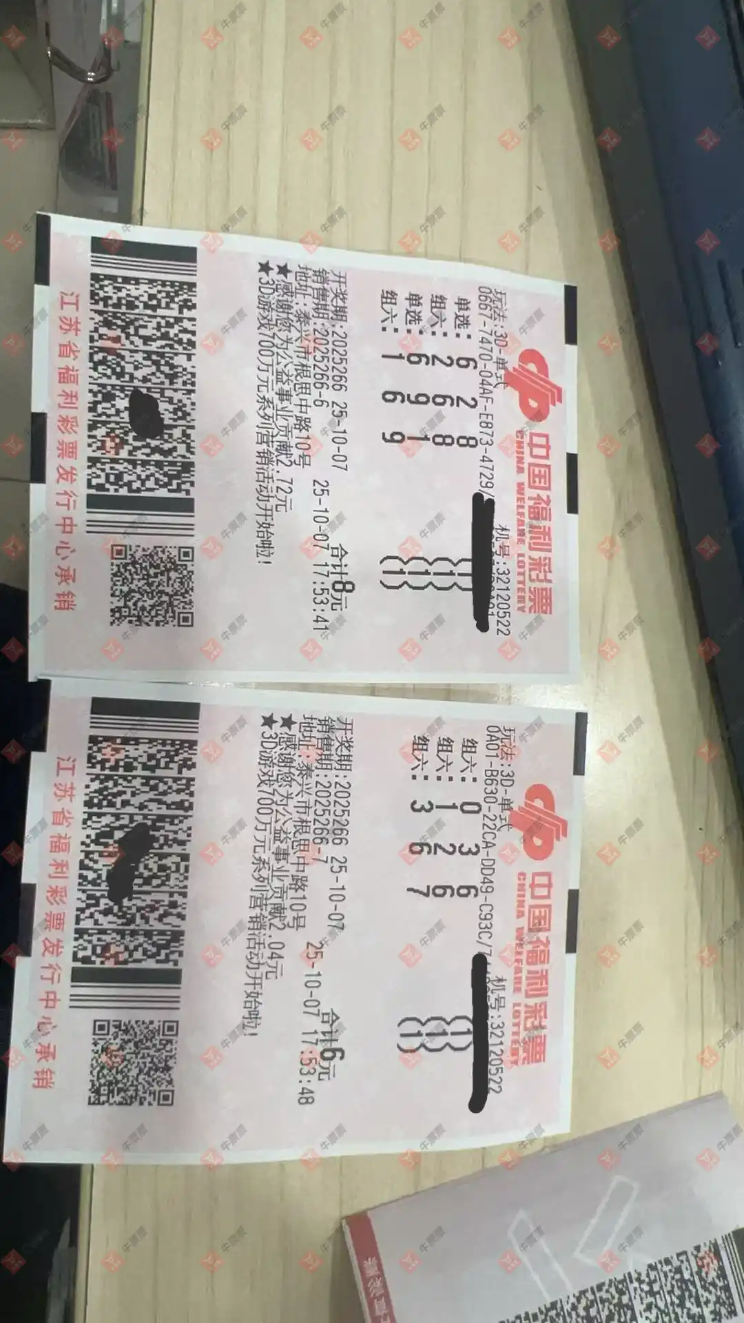 第1/2/3张跟我今晚买的号码有直选撞5倍,组选撞10倍的情况。