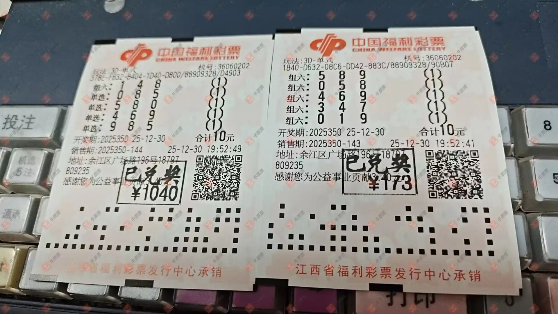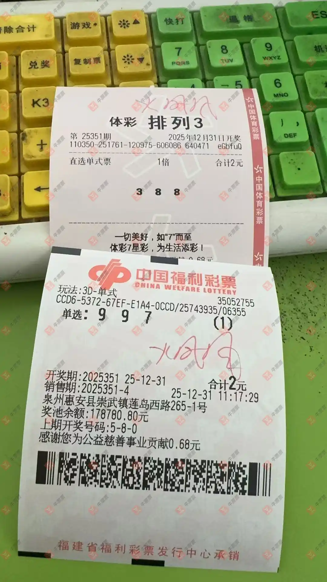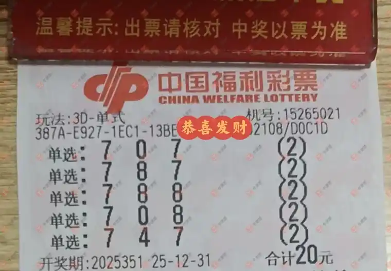 2025/12/31 机选2注统计参考。
