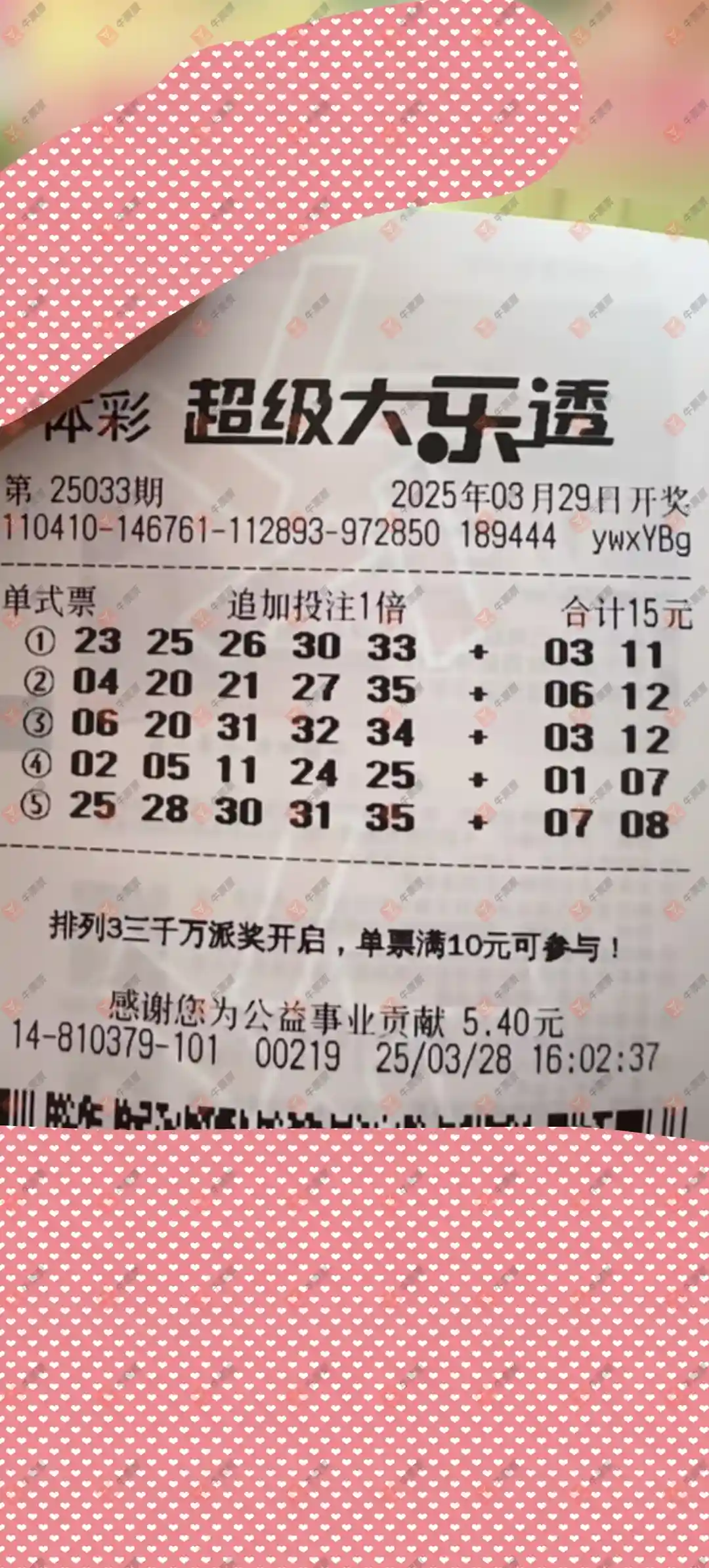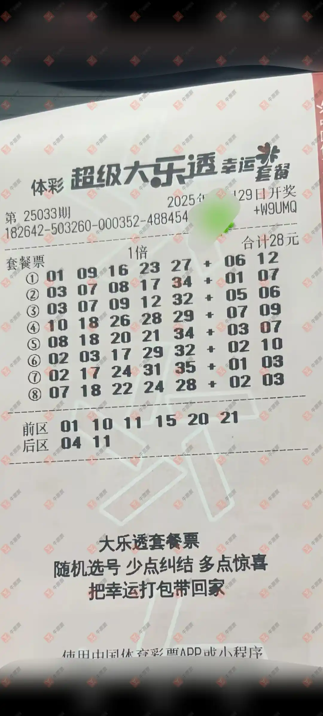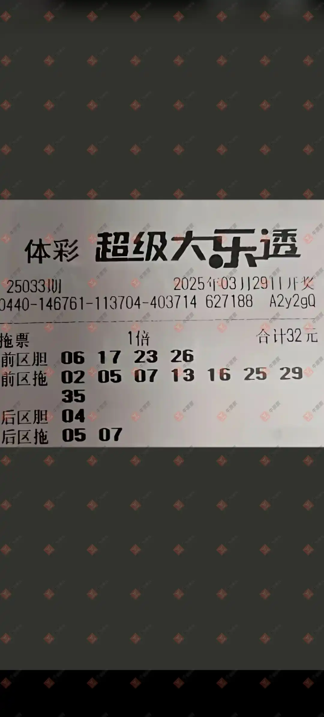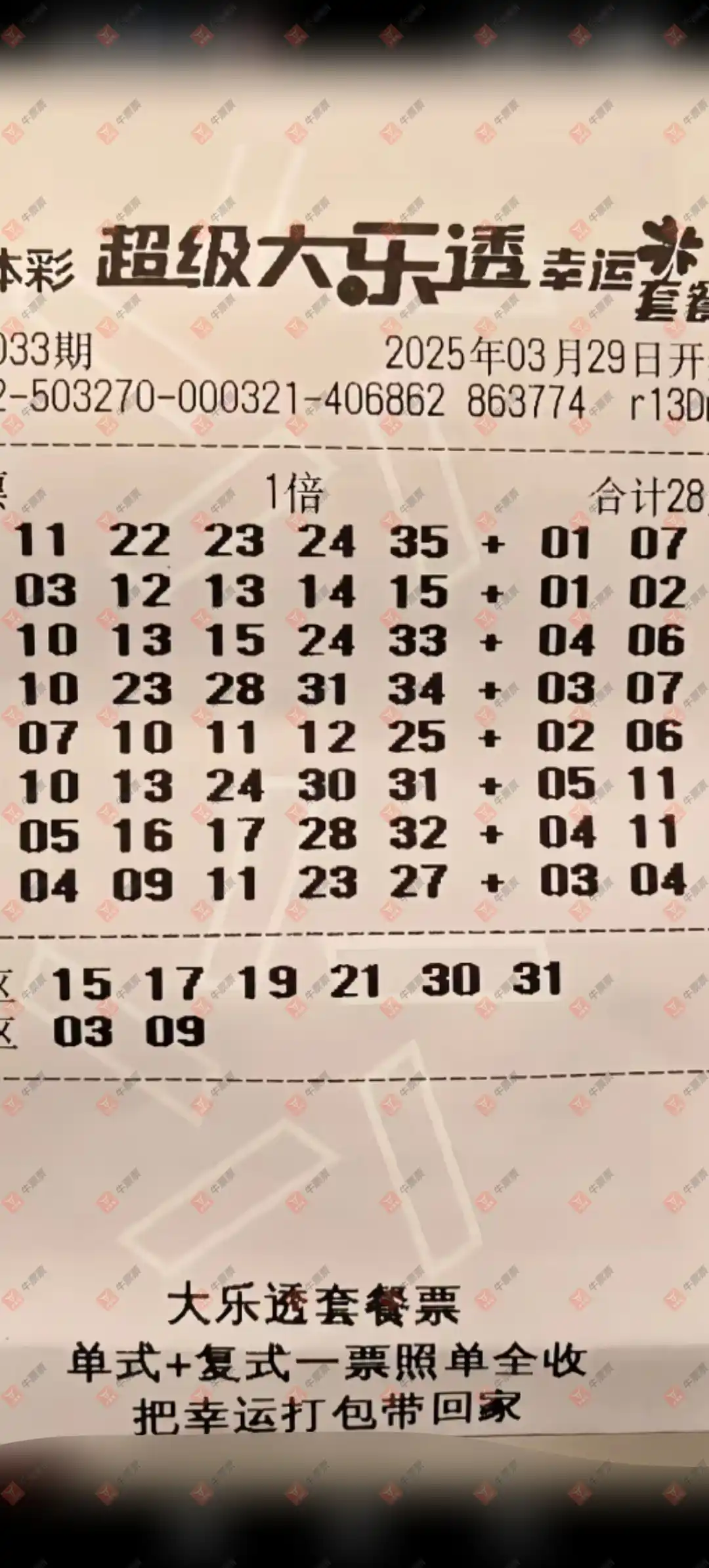 恭喜本票中的4+2一组 2025年3月29号