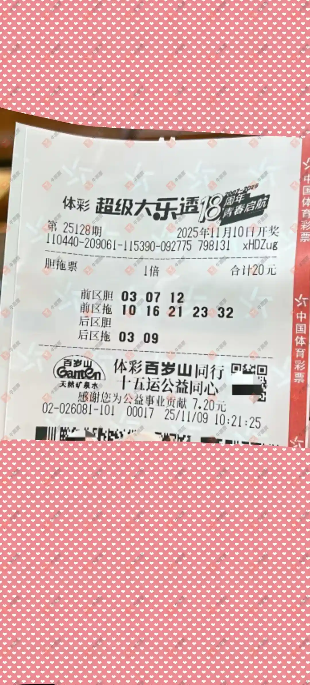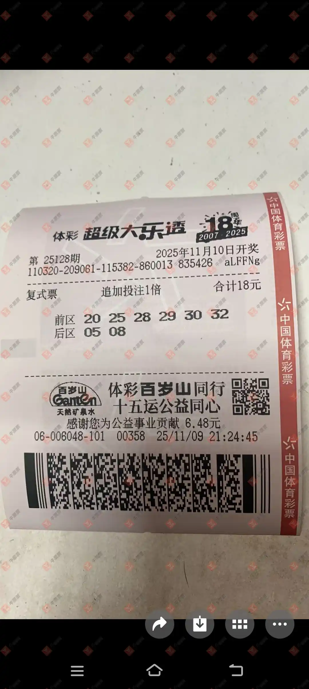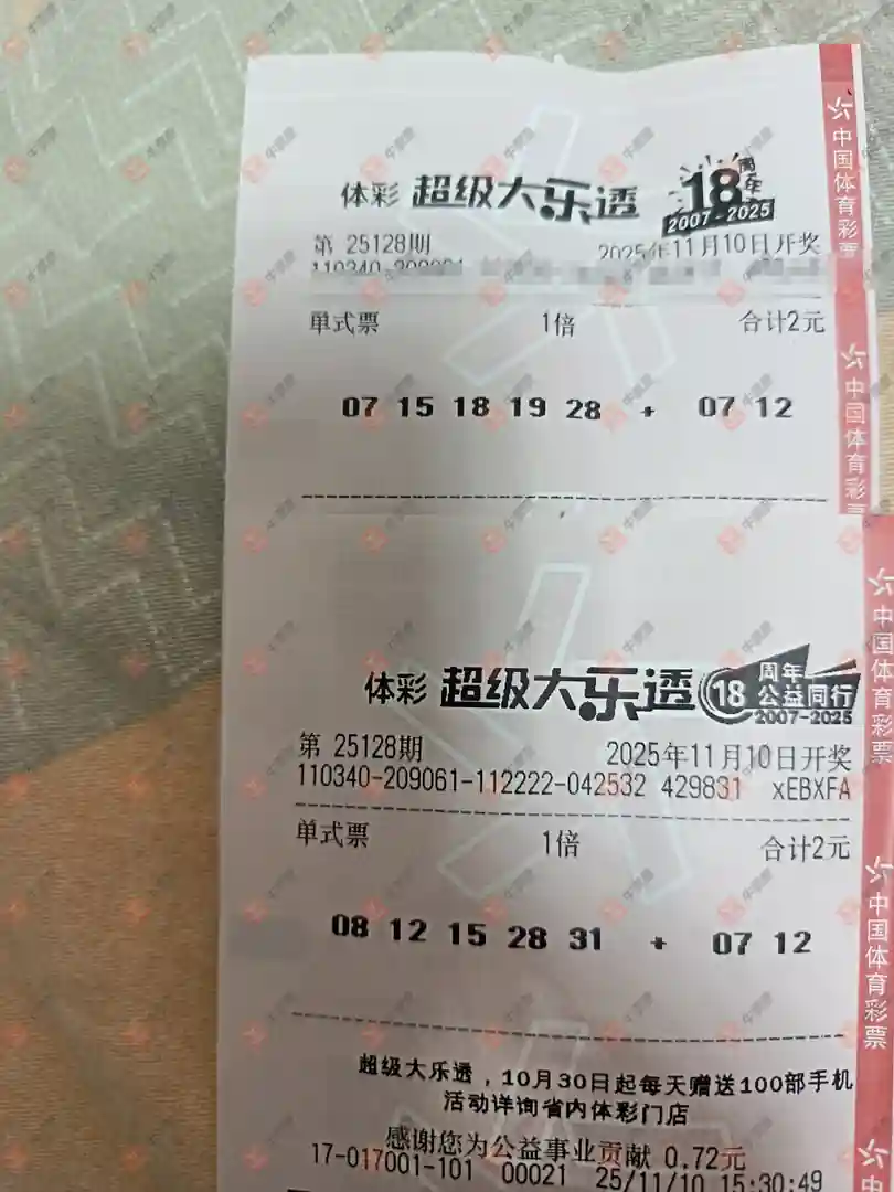 这张票 来自上一回,我看见他晒出机选三组中一等奖同一个人发的 大家研究一下 这也是机选套餐票