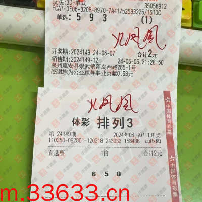 2024年06月07日机选2注号码参考。 统计表格见:火凤凰专属机选号分享。。。。。。 上期3D开奖426,湖南103=0个,福建451=1个,合值跟开奖5天不同、跨度跟开奖1天相同。。。。。 上期排三开奖343,湖南701=0个,福建224=1个,合值跟开奖7天不同、跨度跟开奖2天不同。