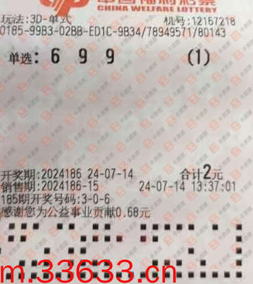 福彩3D 2024186期