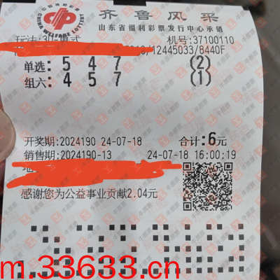 福彩3D 2024190期