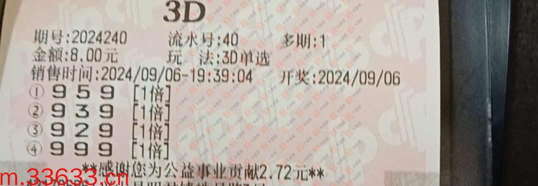 福彩3D 2024240期