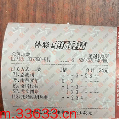 进球对三场,目前赔率中67亏一半。本轮意乙十场出来九场平局,好变态啊,没抓住,头条买的六串一错了一场。比分串对一场目前赔率99,北单单关73,竞彩单关54,小比分竞彩划算,大比分北单划算。。进球串胜平负中71,。。足球差不多保本,亏了排列三和3D