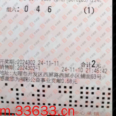 福彩3D 2024302期