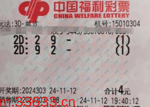 福彩3D 2024303期