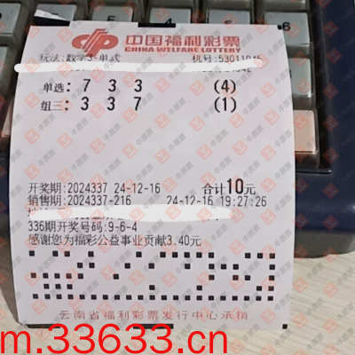 福彩3D 2024337期