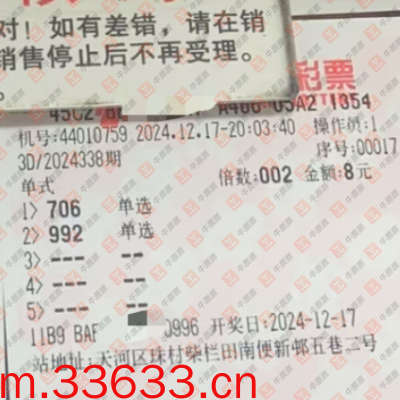 福彩3D 2024338期