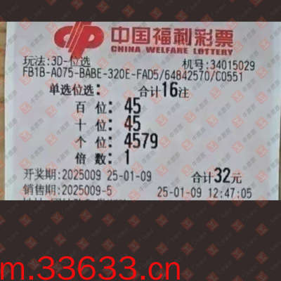 福彩3D 2025009期