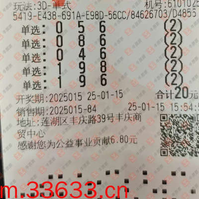 福彩3D 2025015期