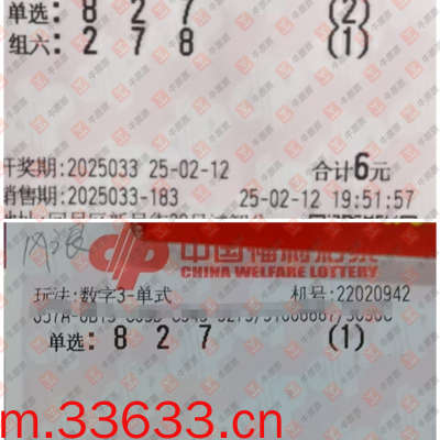 福彩3D 2025033期