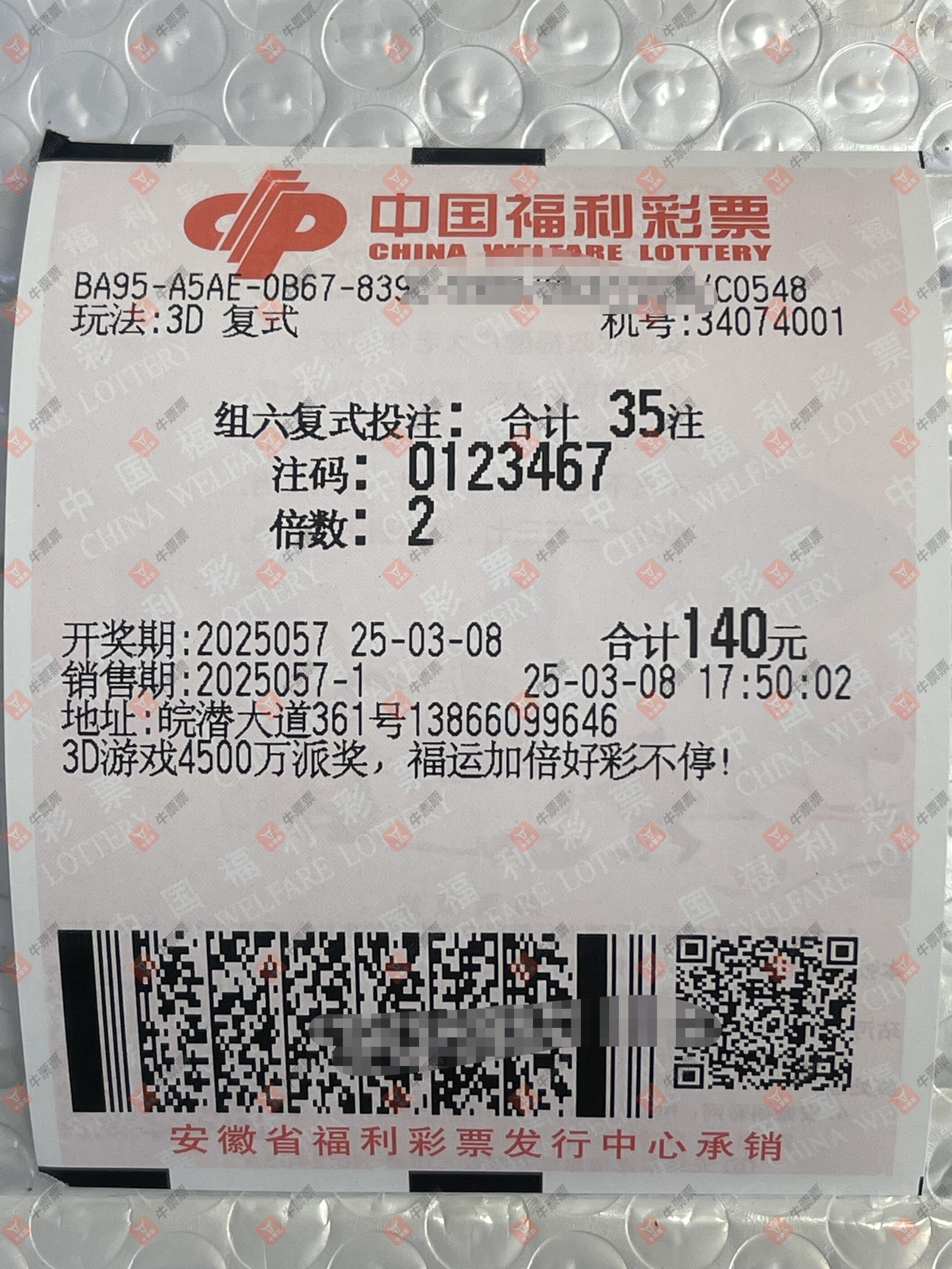 福彩3D 2025057期