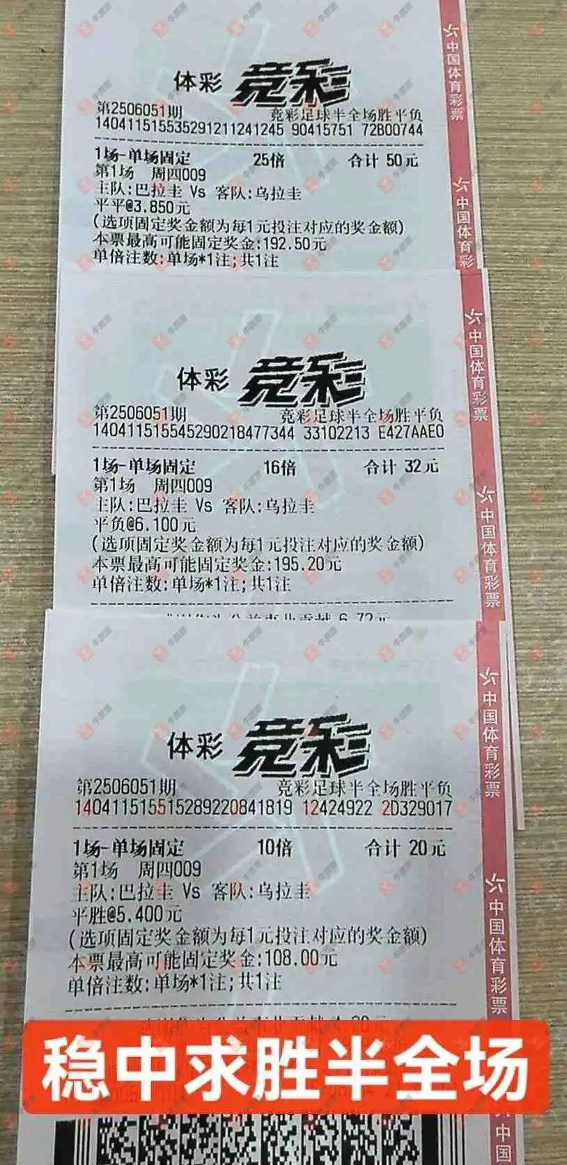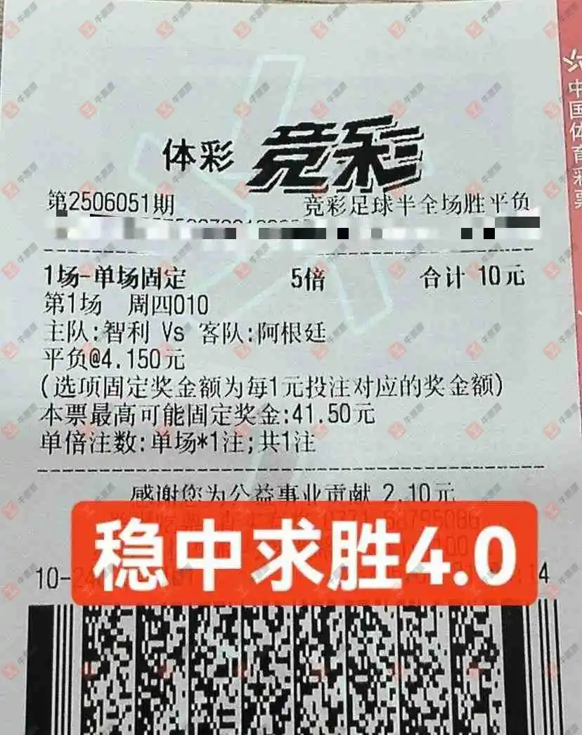 稳中求胜十倍高赔率005平负+010让平此单连黑50期了。竞彩理论上无法控制国外的比赛,但是已出票也输得让人懵逼。