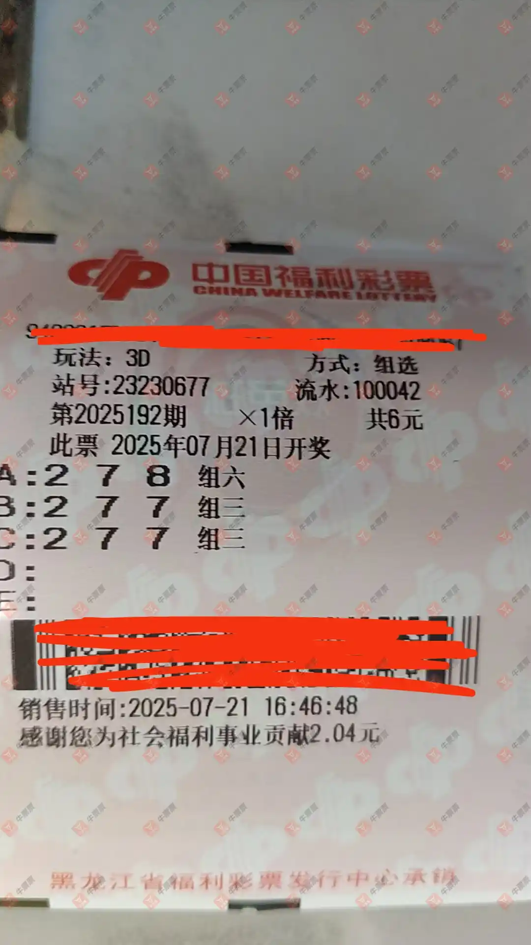 福彩3D 2025192期