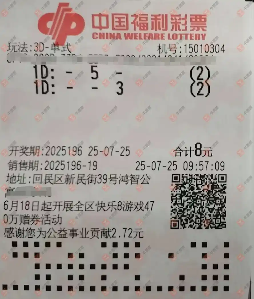 福彩3D 2025196期