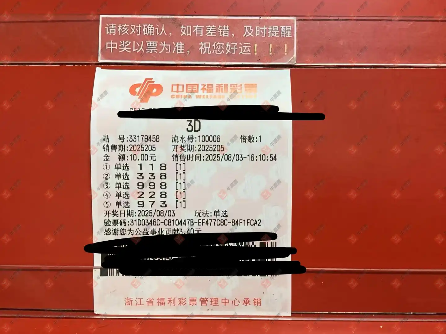 福彩3D 2025205期