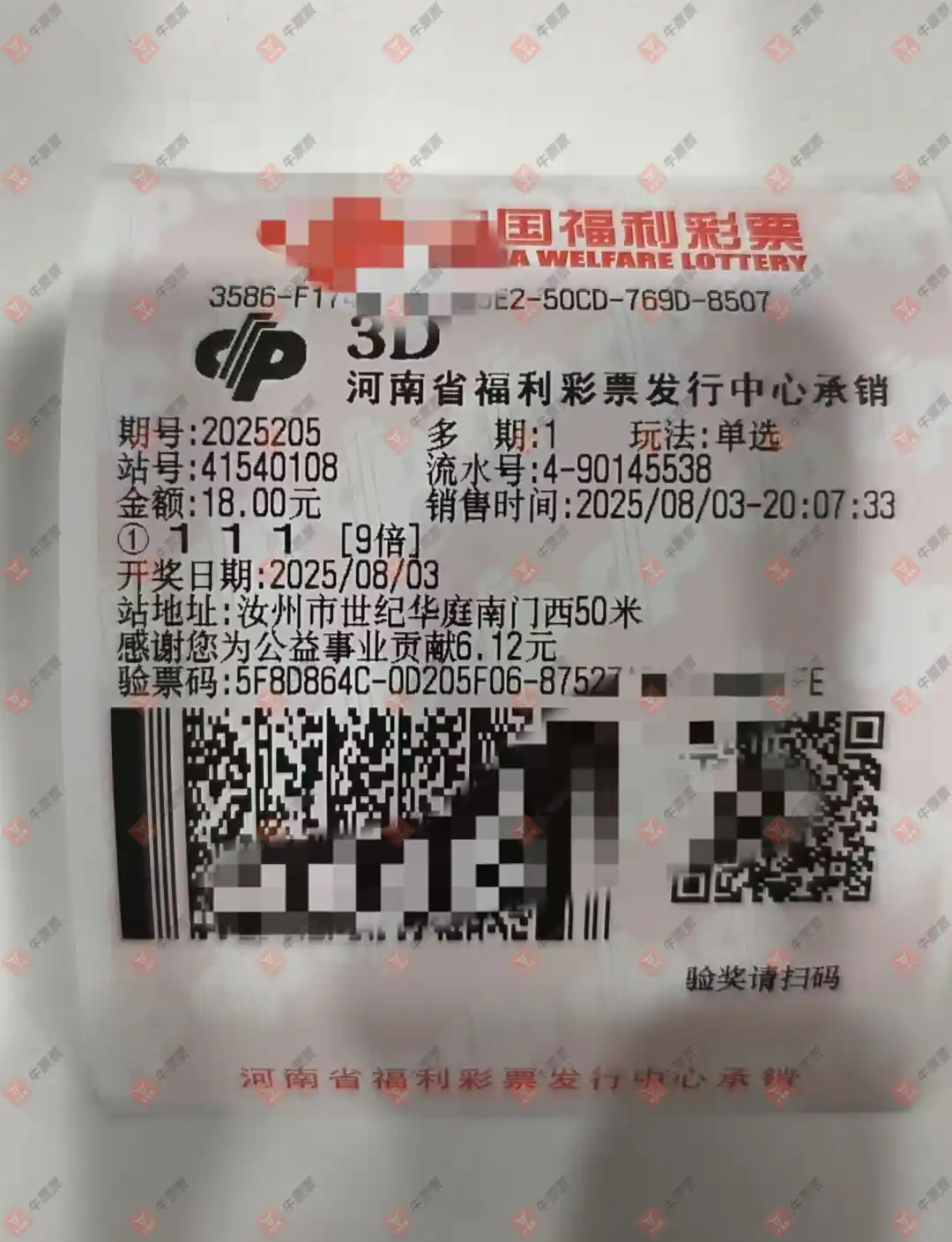 福彩3D 2025205期