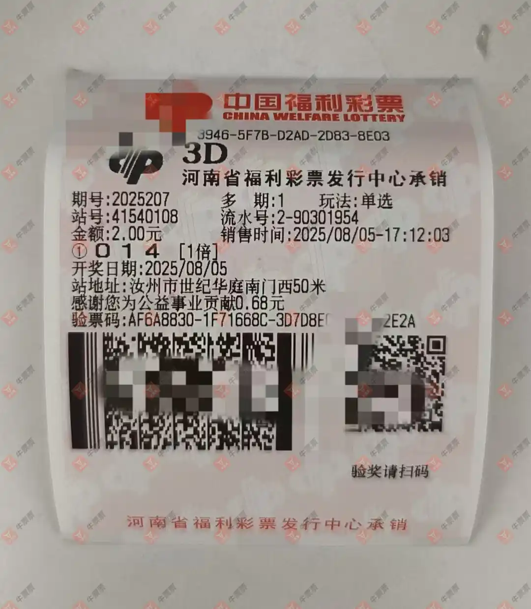 福彩3D 2025207期