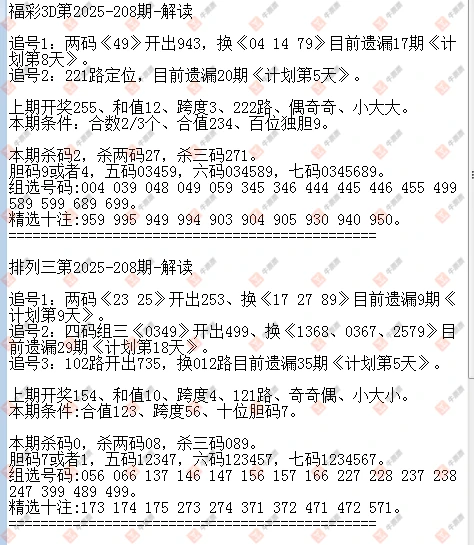 排列三 2025208期
