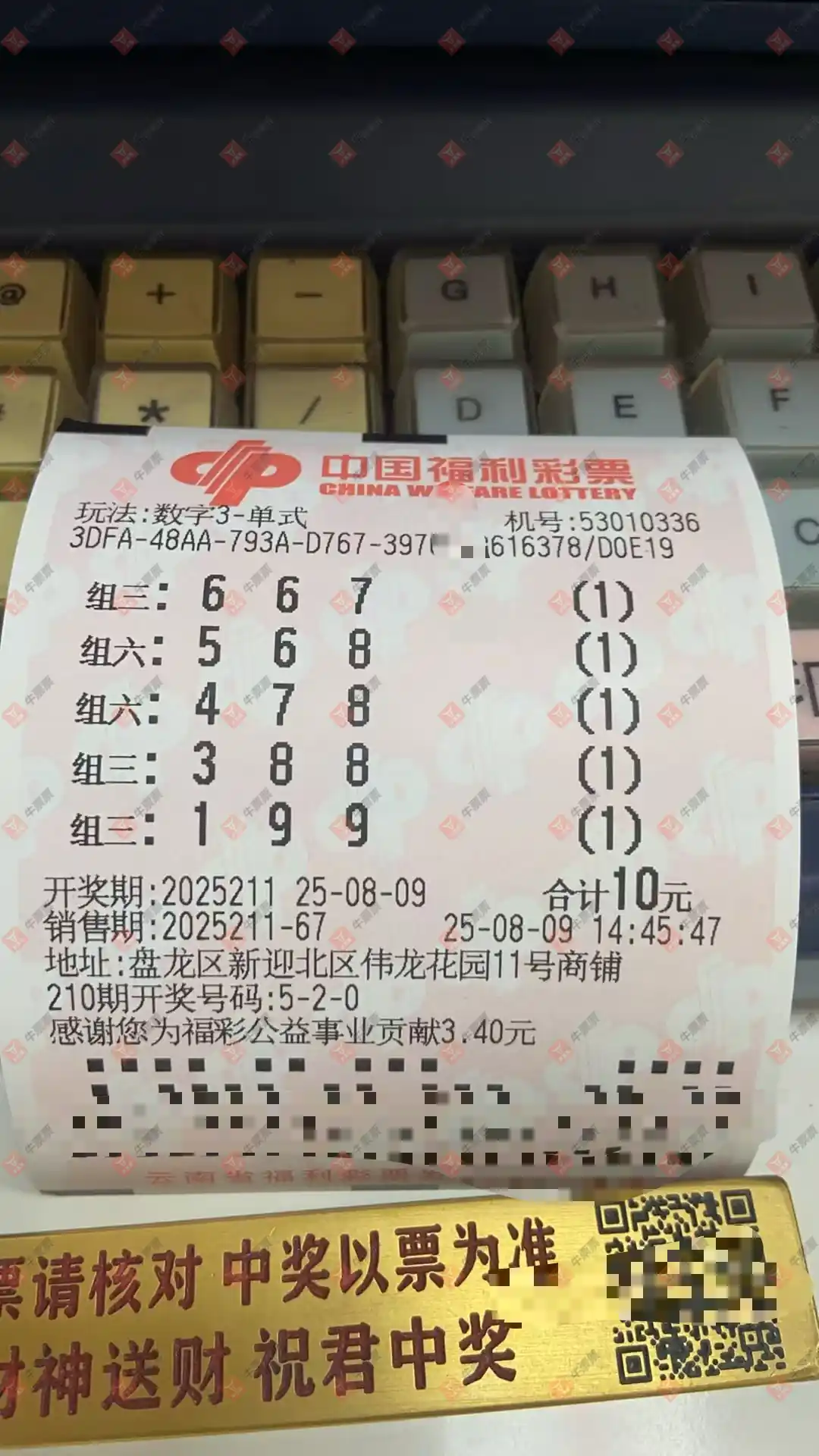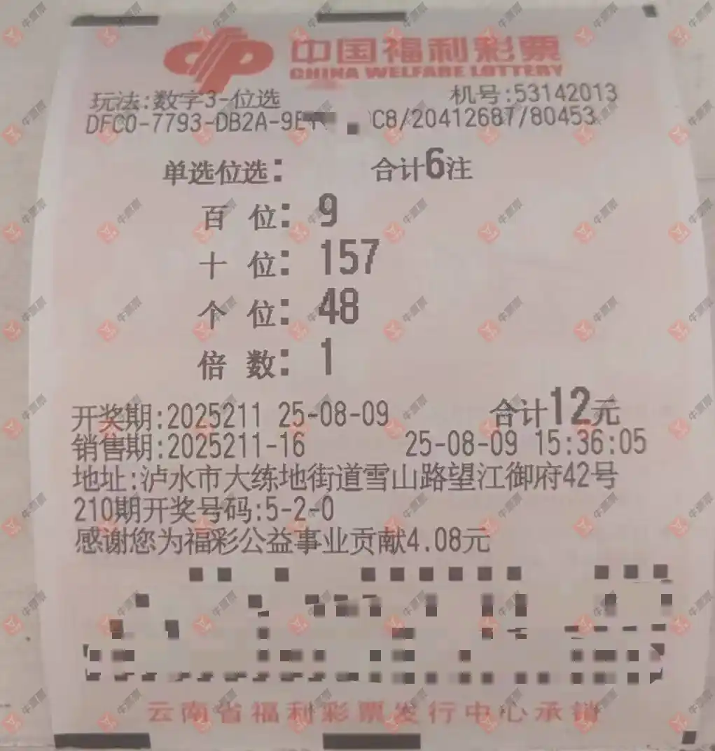 福彩3D 2025211期