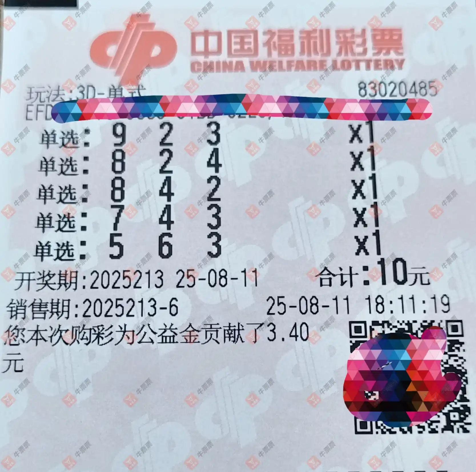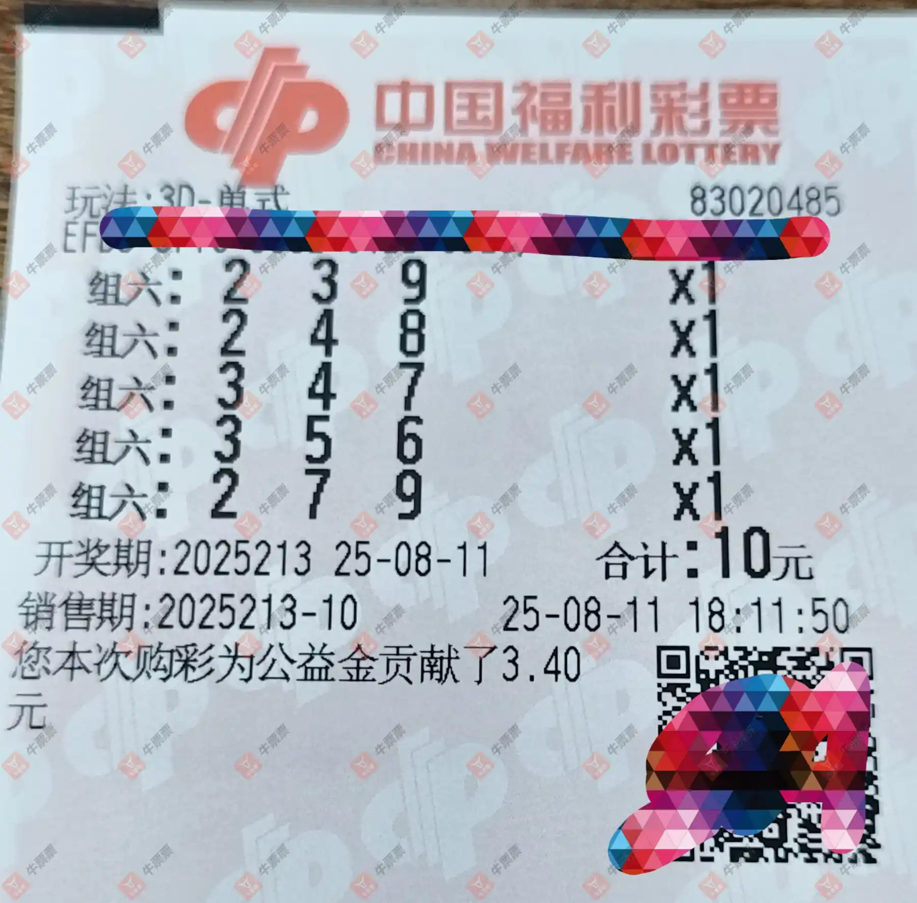 福彩3D 2025213期