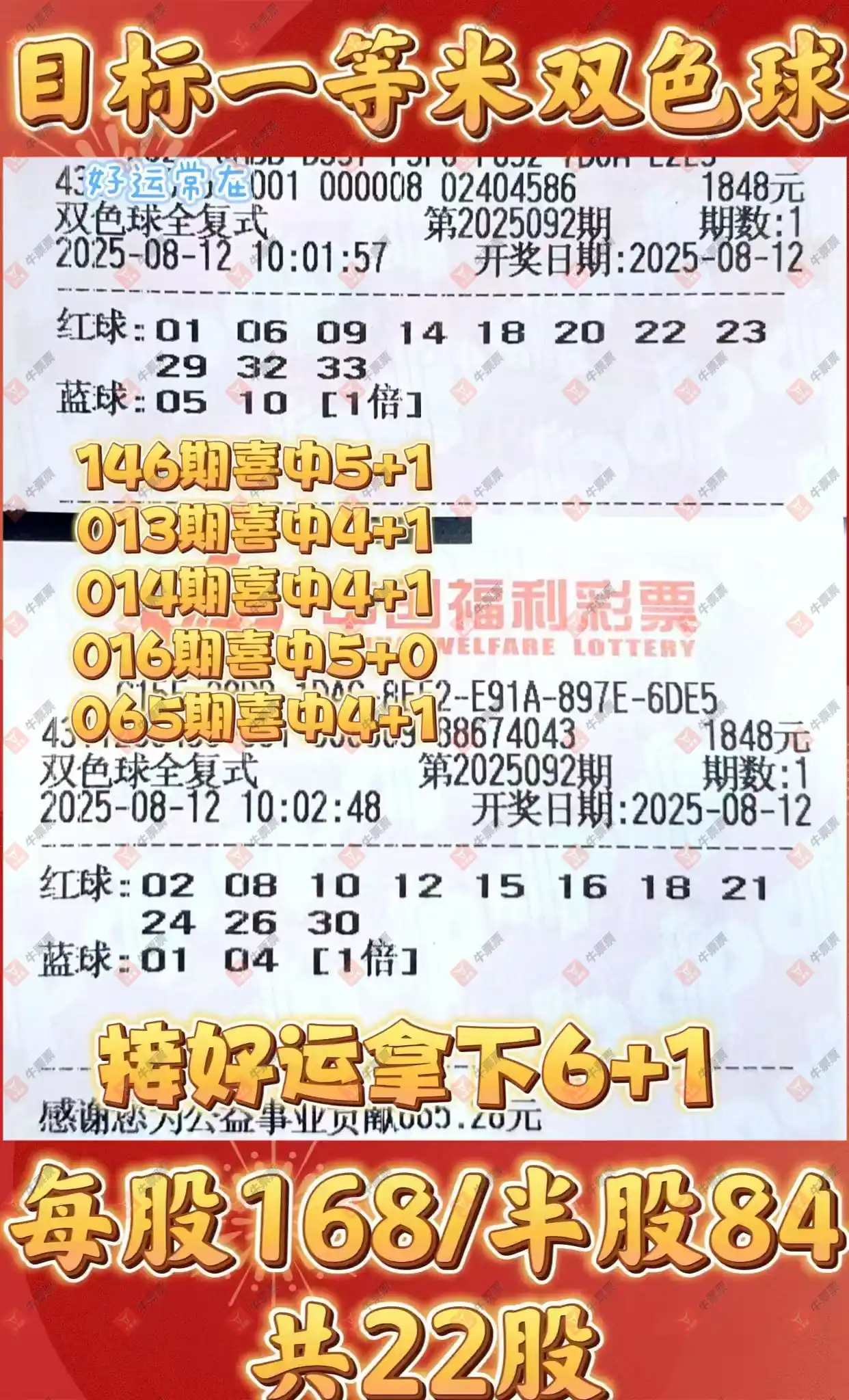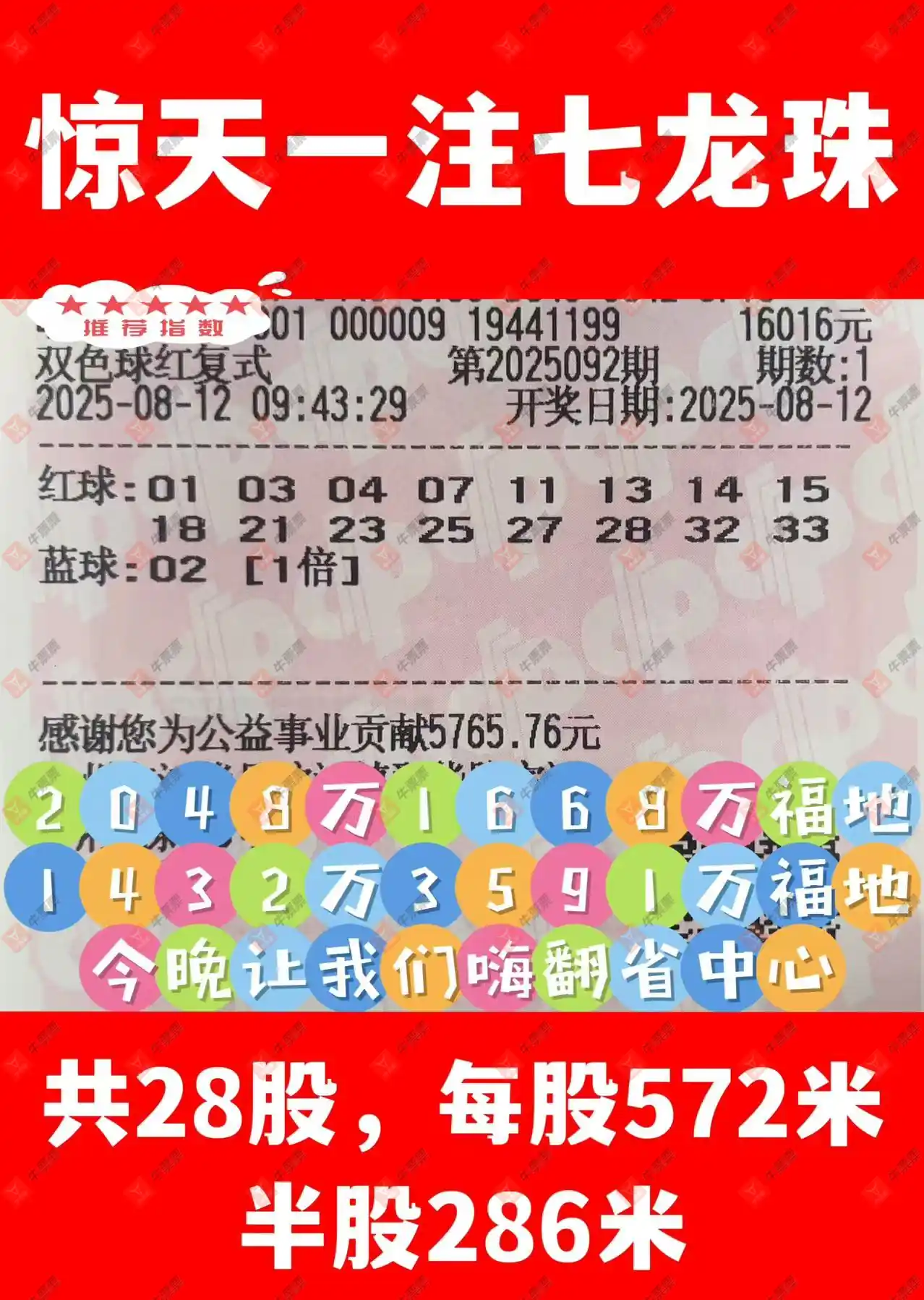晒中092期双色球合买票