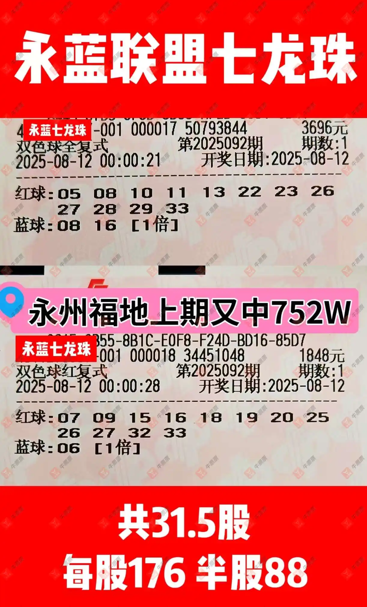 晒中092期双色球合买继续