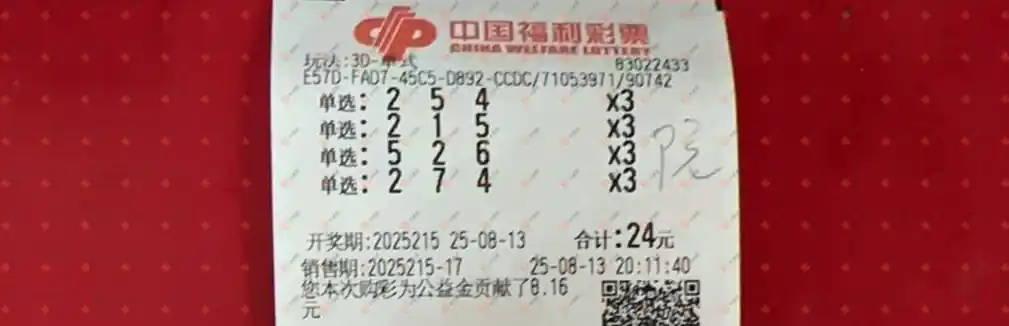 福彩3D 2025215期