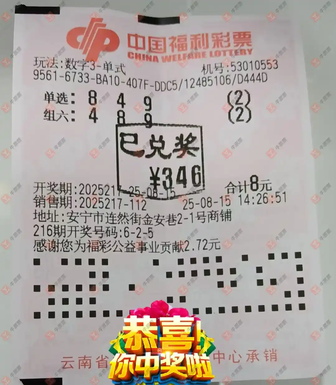 福彩3D 2025217期