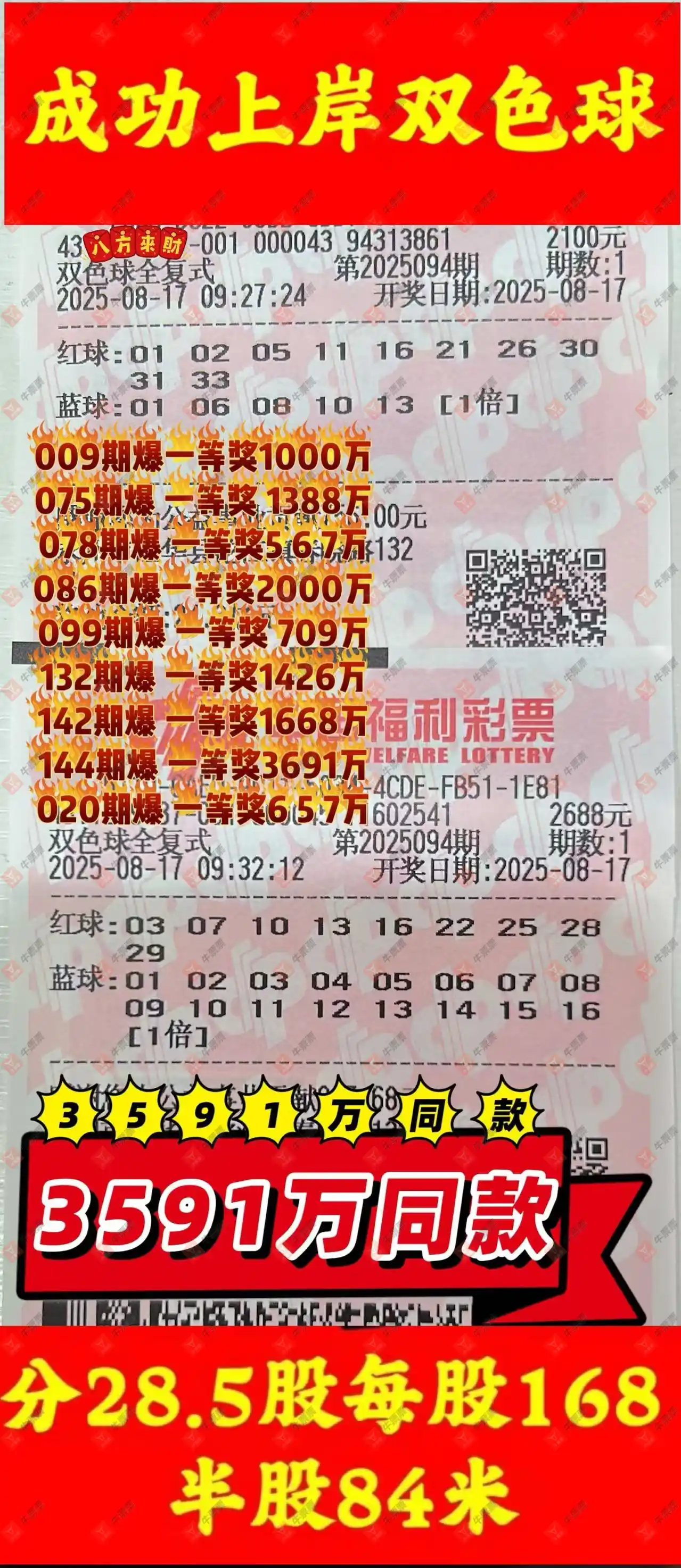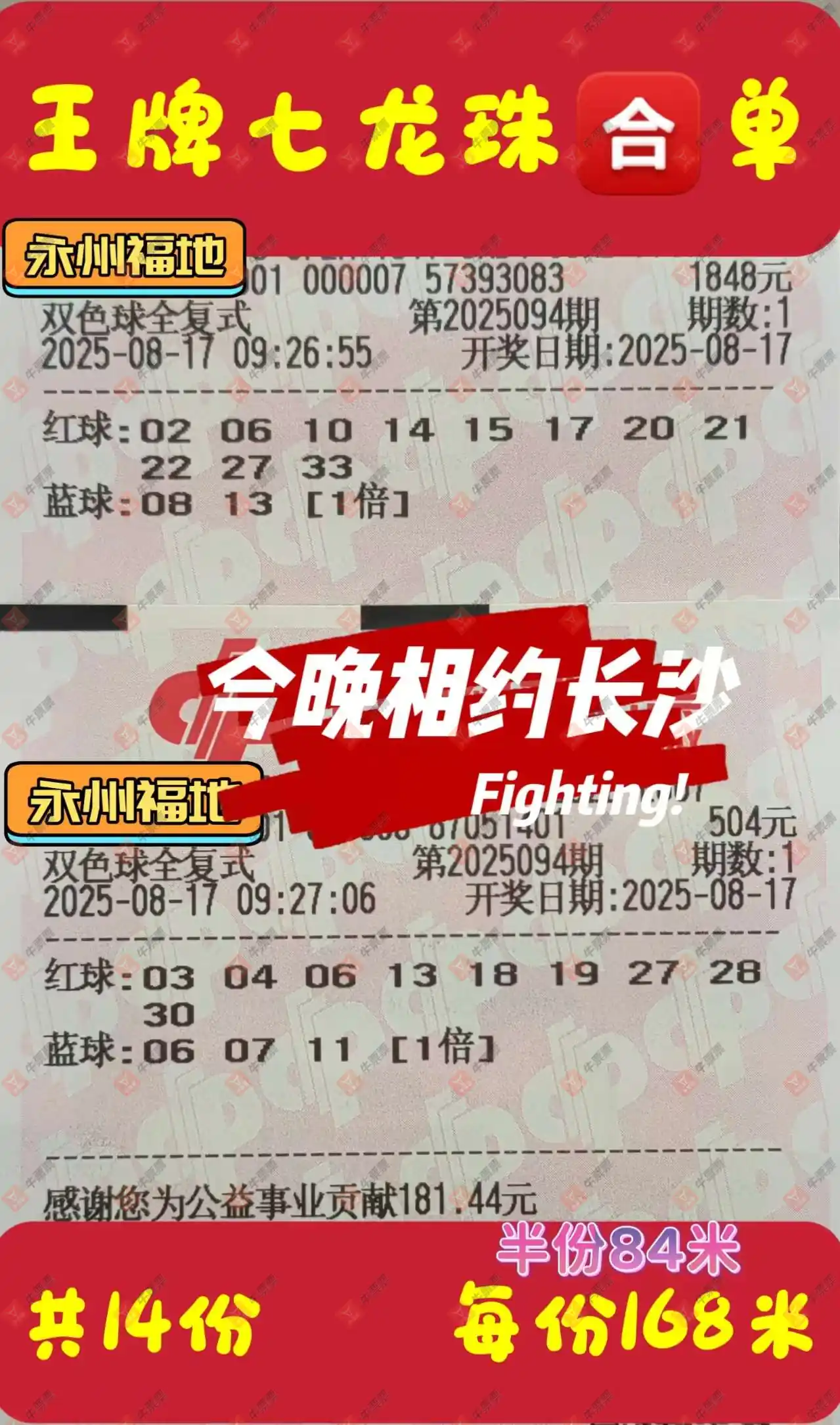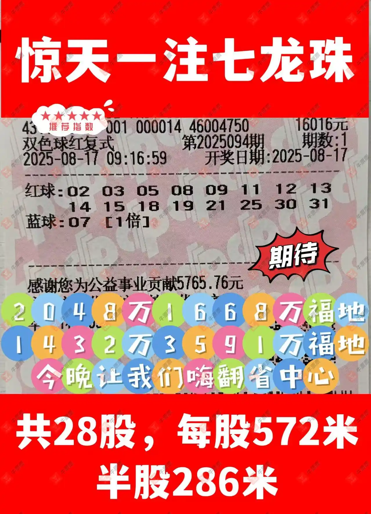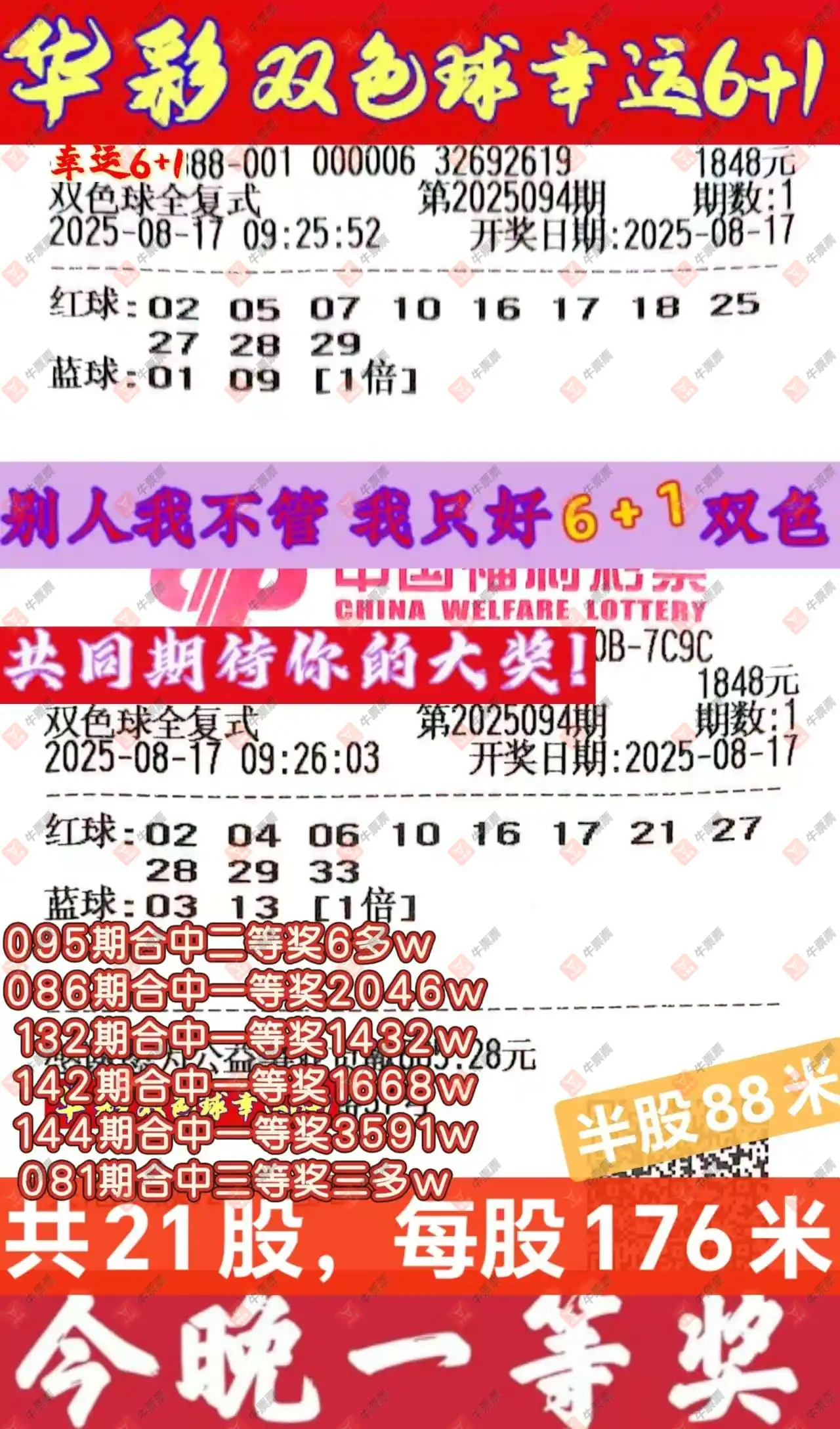 晒中094期双色球合买票