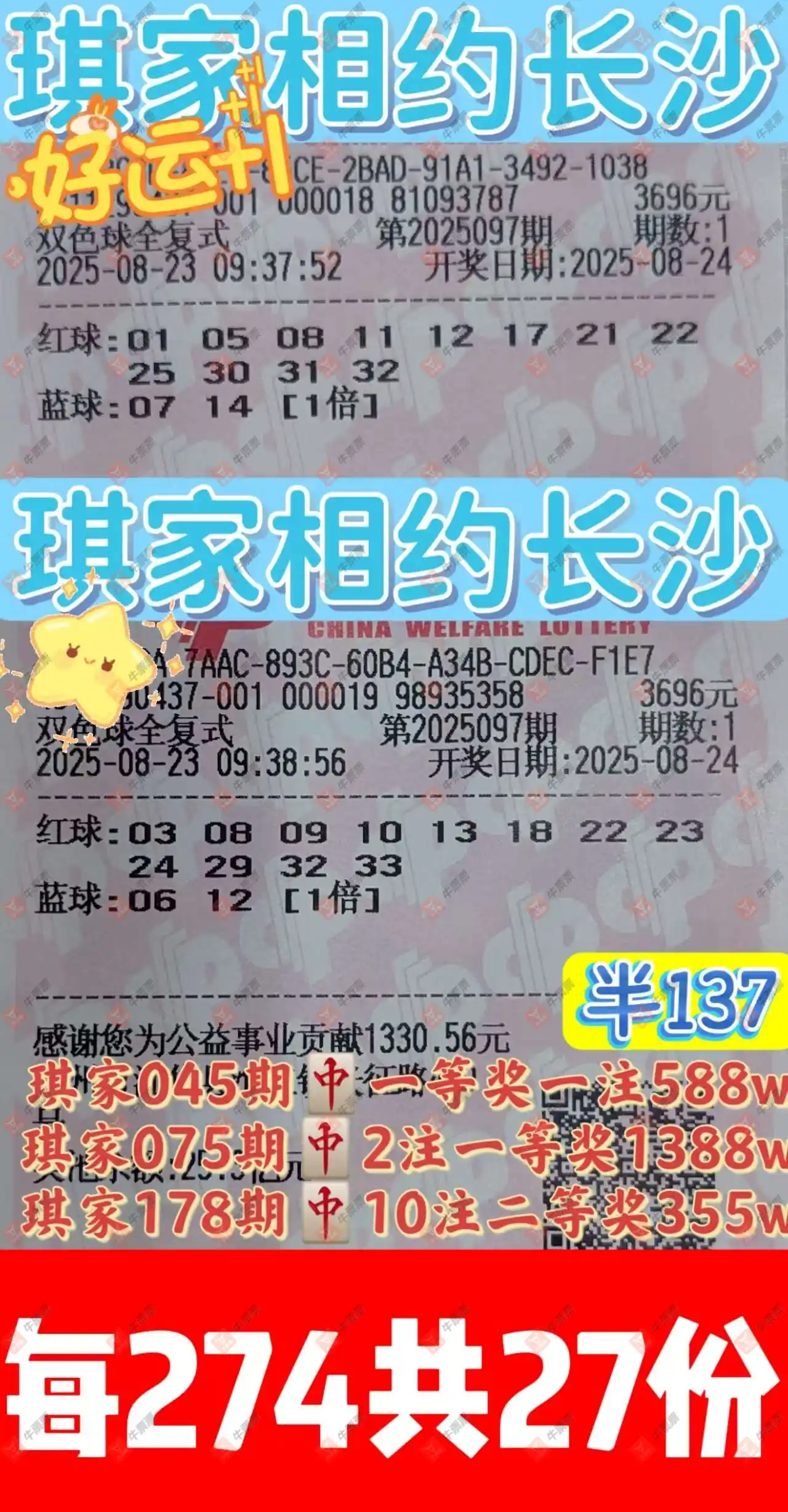 晒中097期双色球合买票