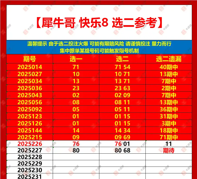 犀牛快8两码目前是80 68计划第11天,兰花指两码54 61计划第17天。