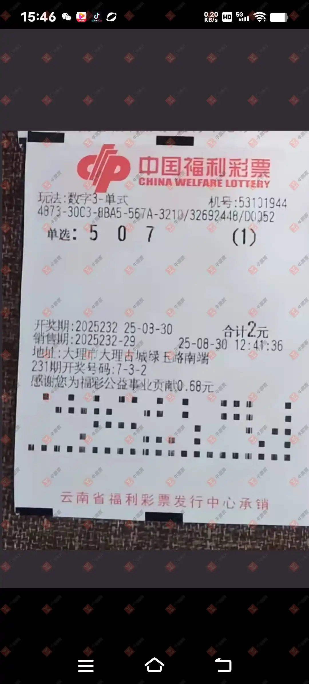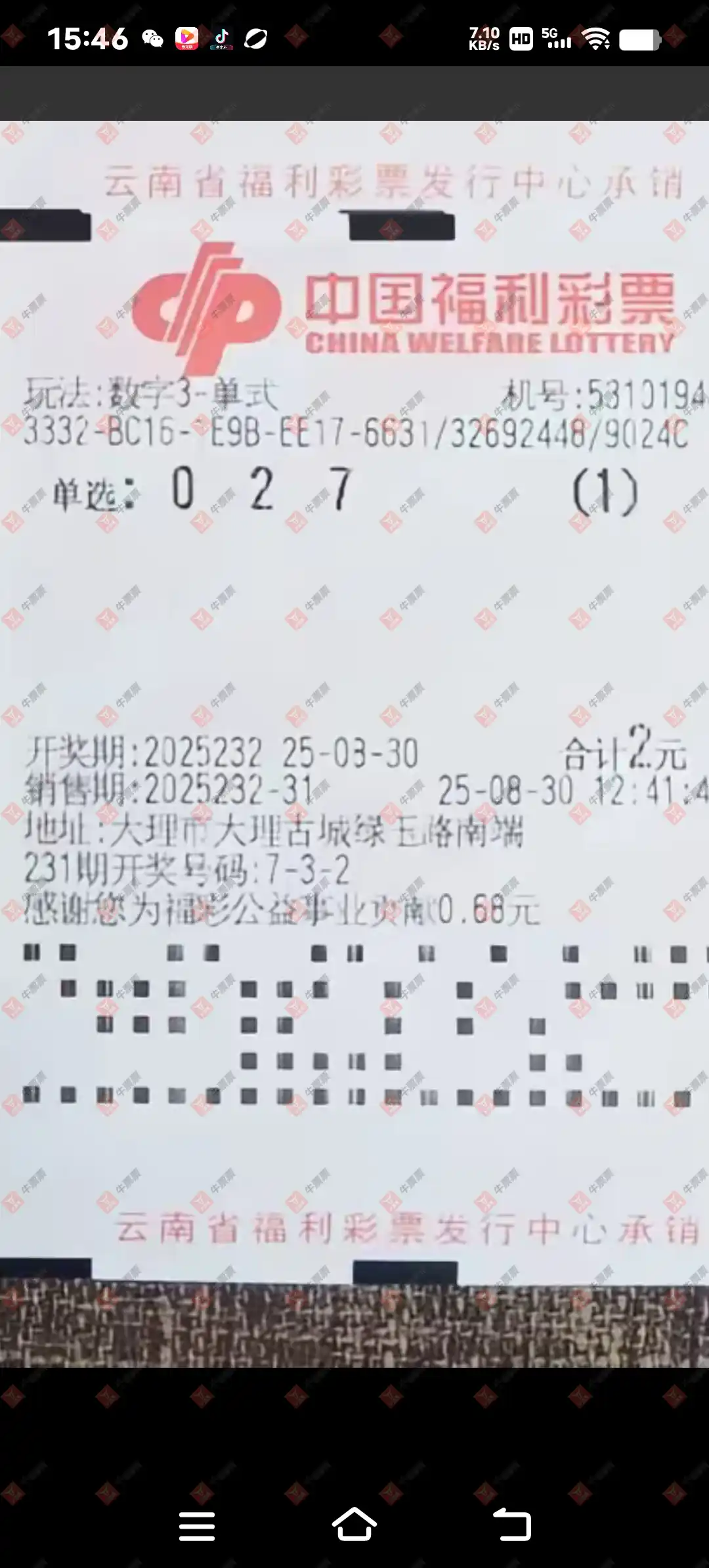 福彩3D 2025232期