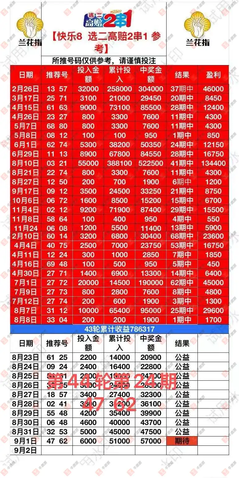 犀牛快8两码目前是47 02计划第18天,兰花指两码47 62计划第24天。