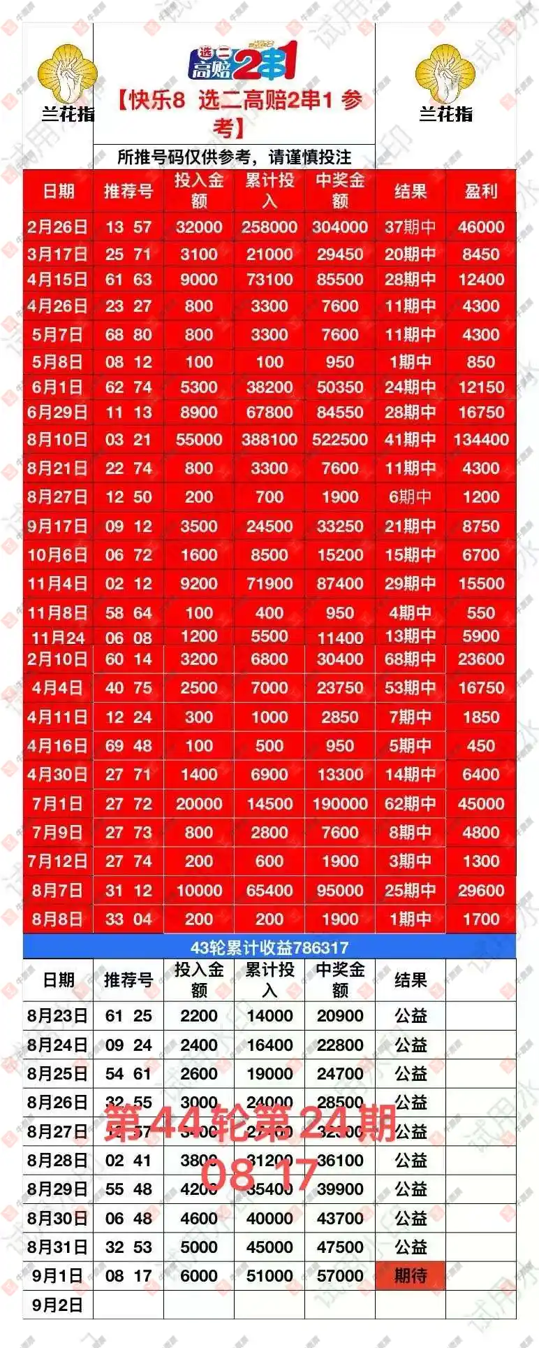 犀牛快8两码目前是04 55计划第19天,兰花指两码08 17计划第25天。