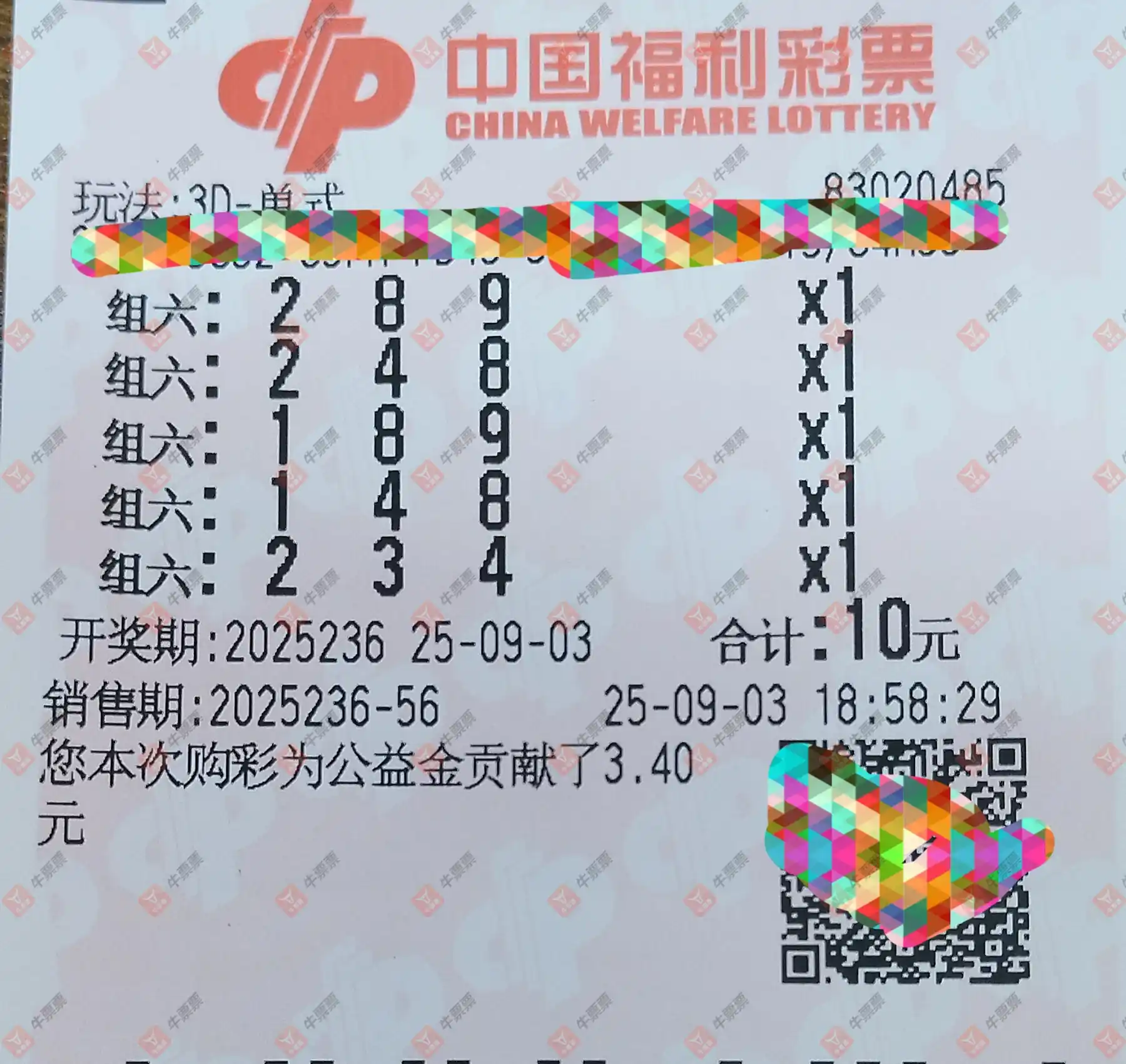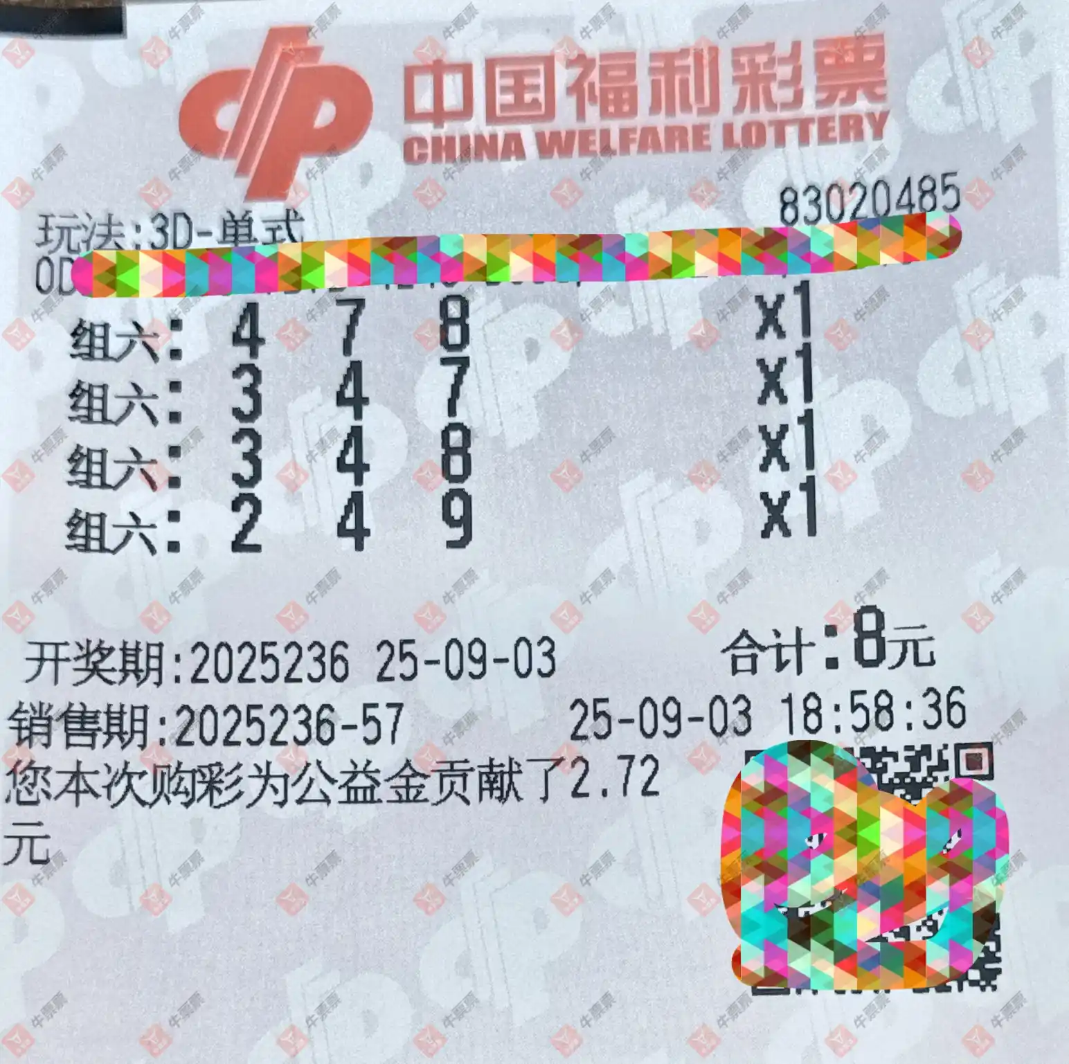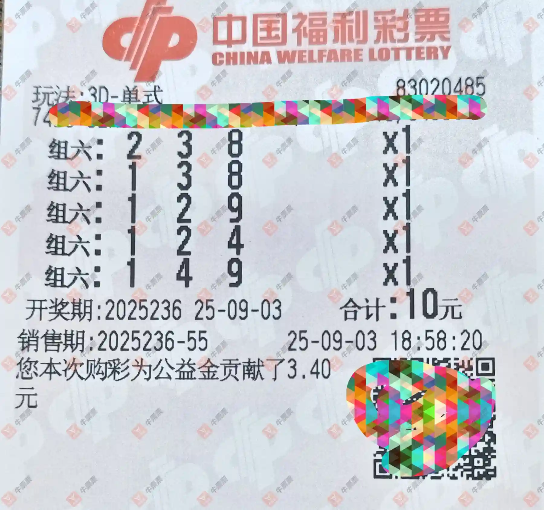 福彩3D 2025236期