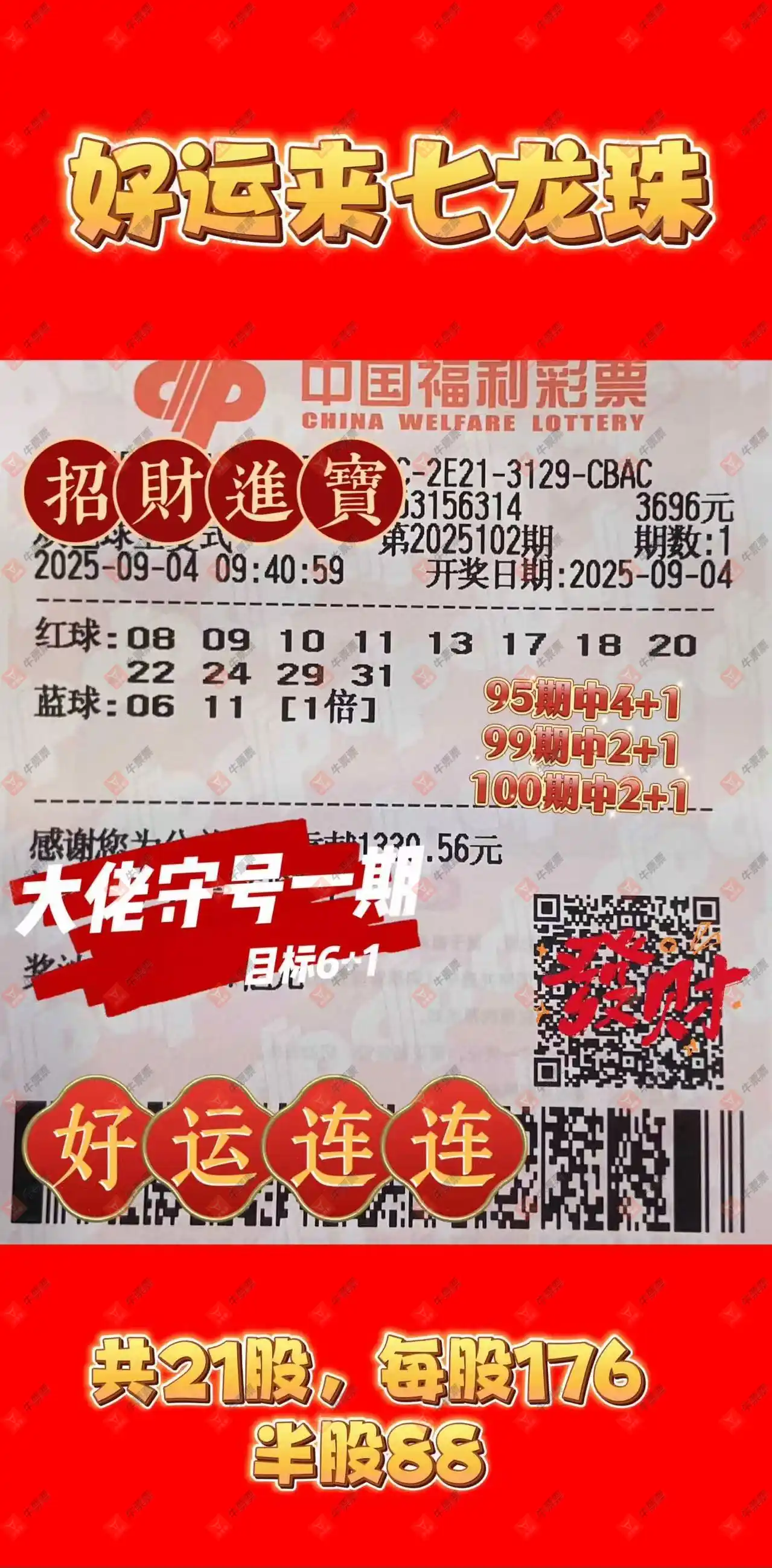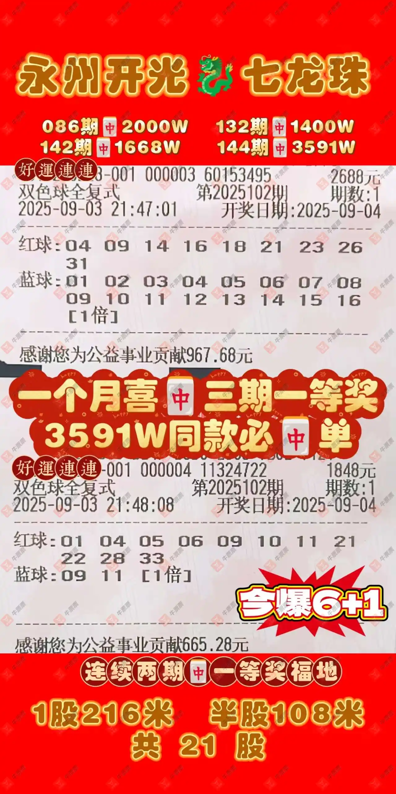 晒中102期双色球合买票