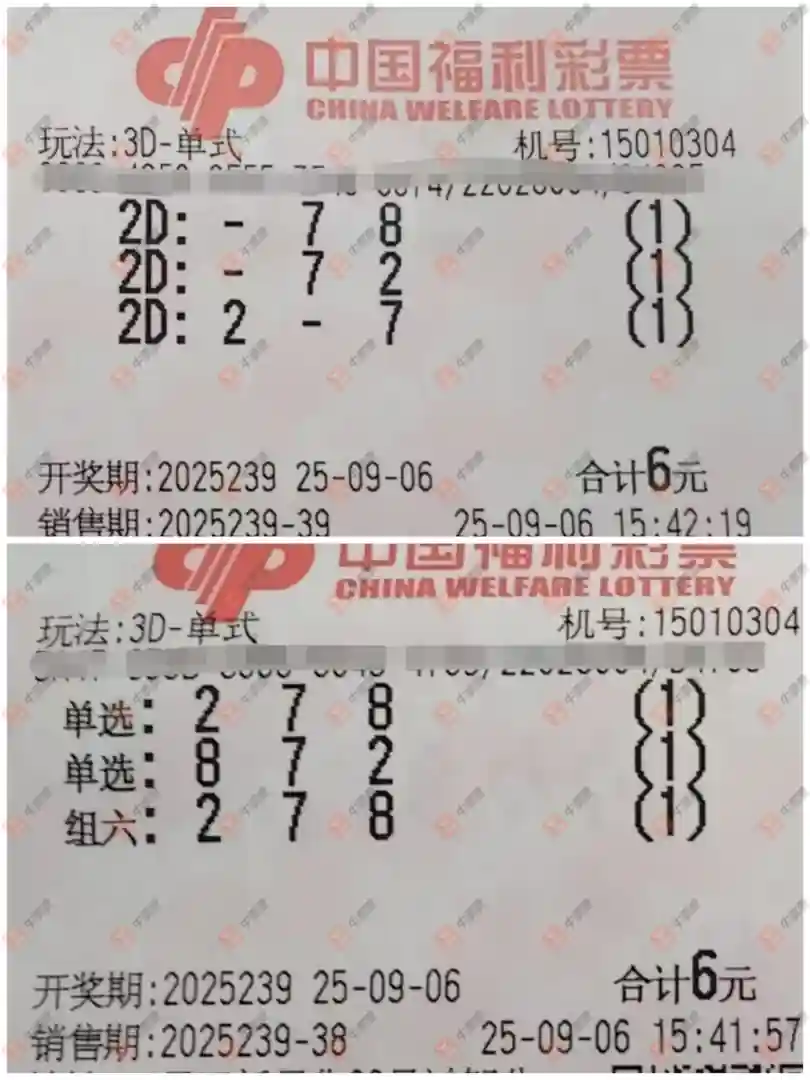 福彩3D 2025239期