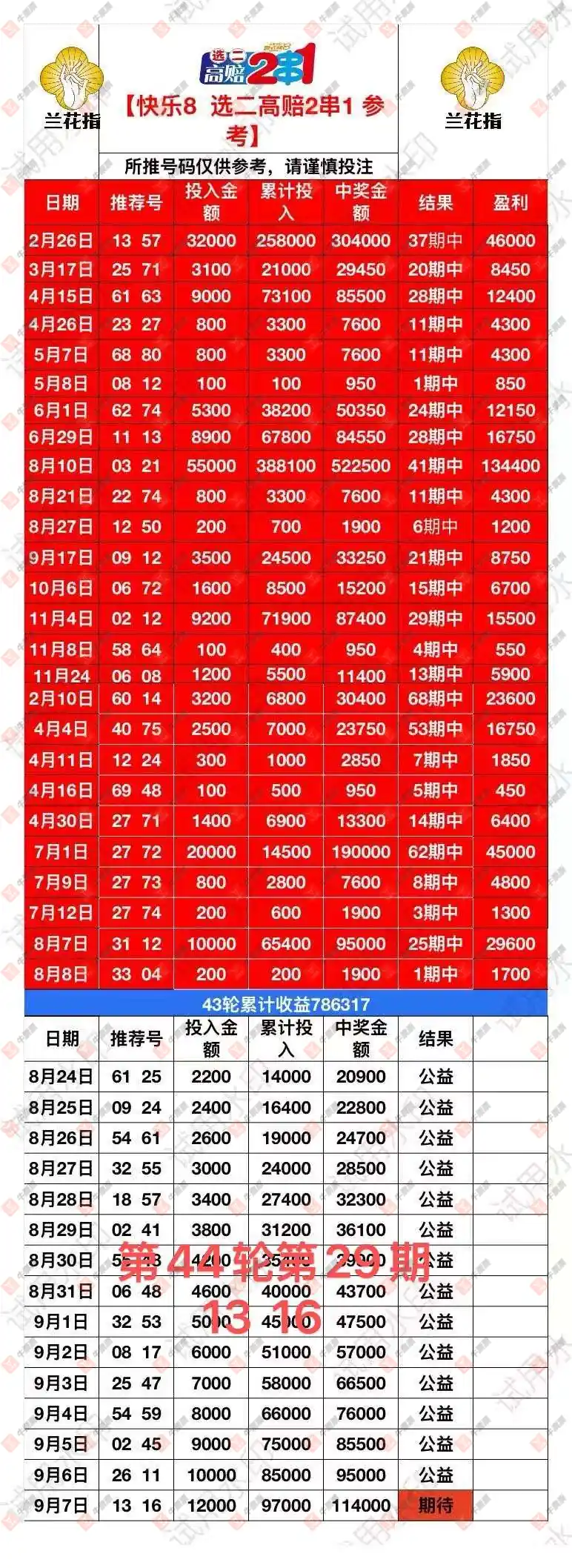 犀牛快8两码目前是08 60计划第24天,兰花指两码13 16计划第29天。