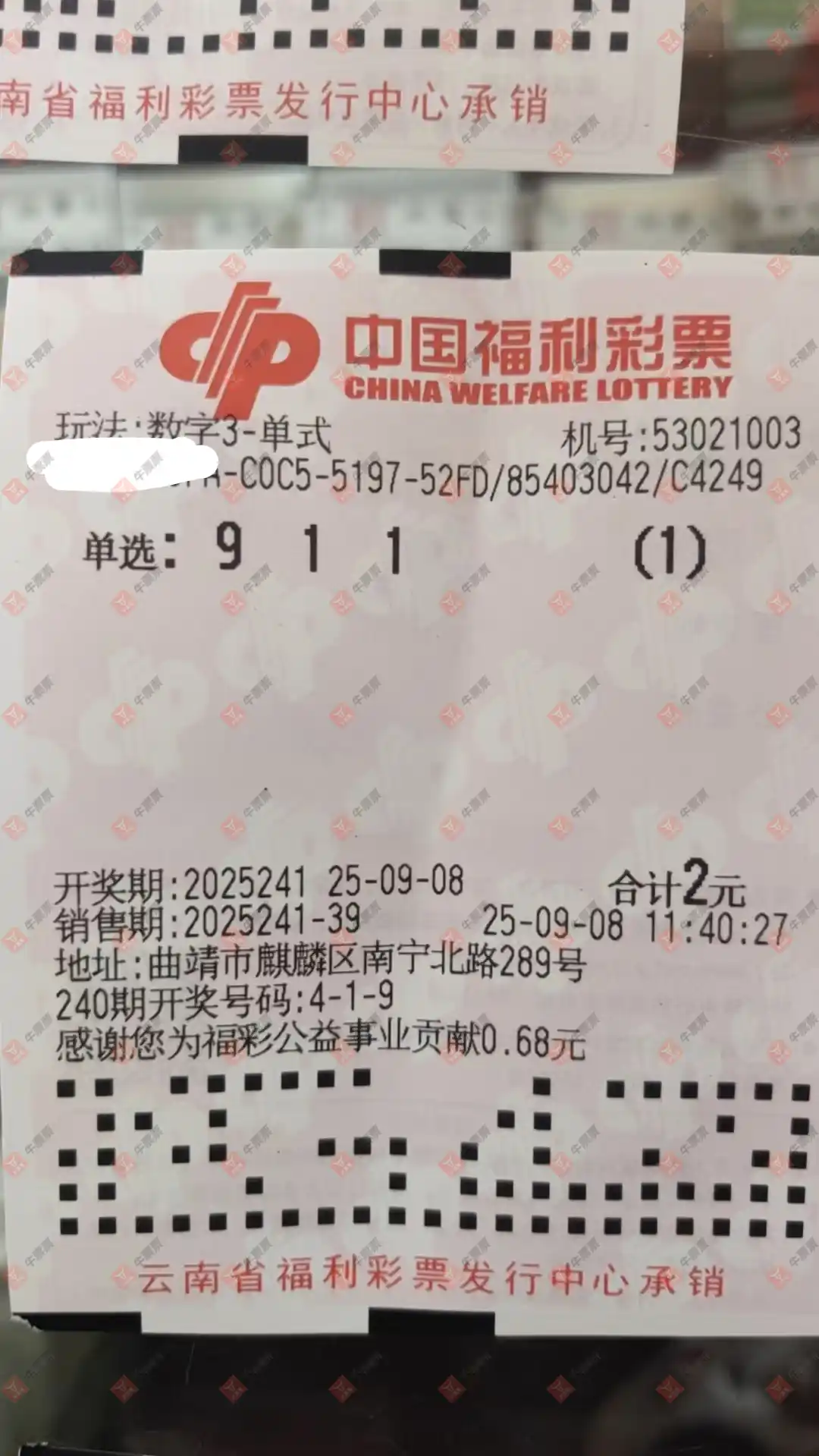 福彩3D 2025241期