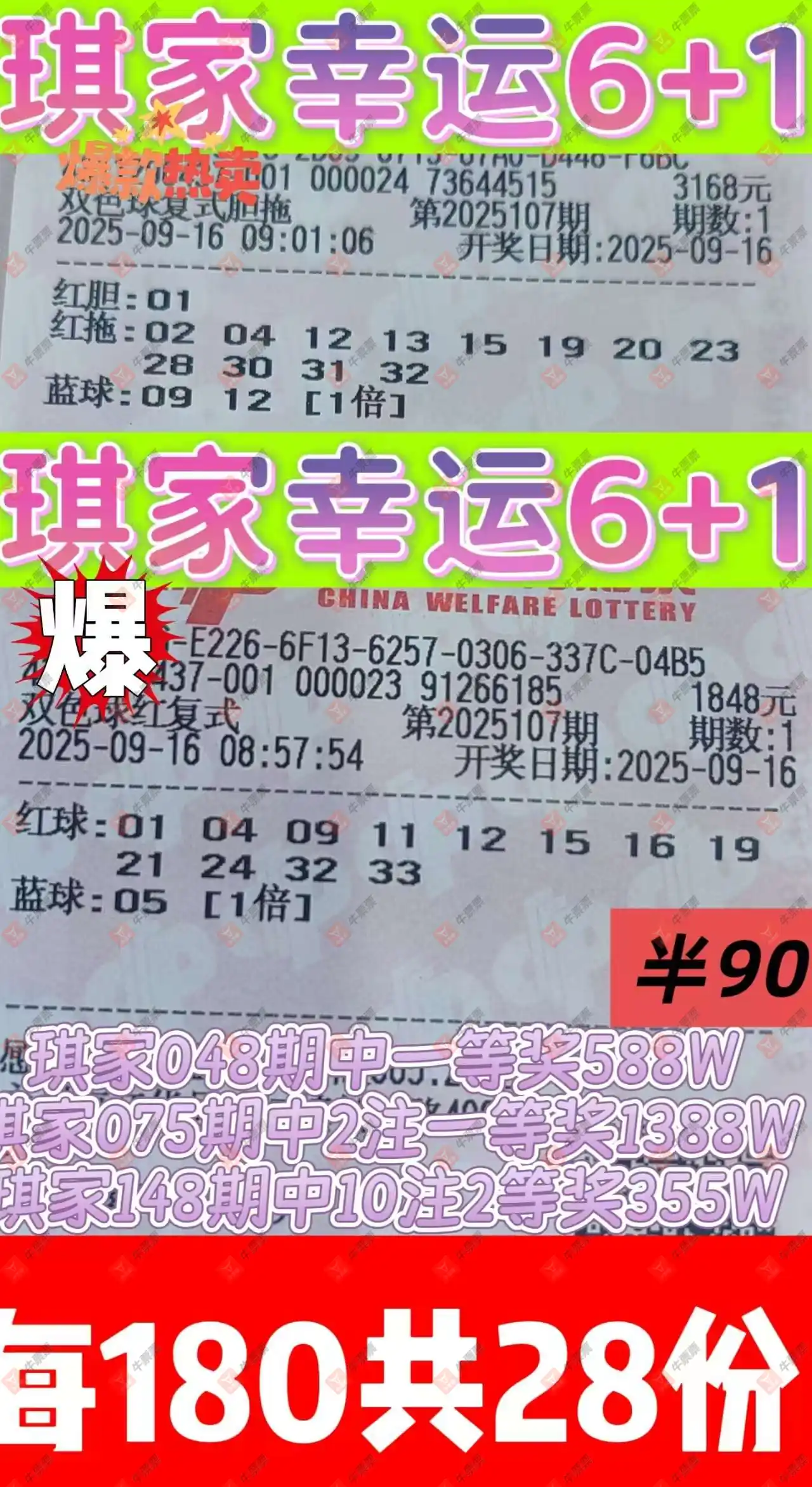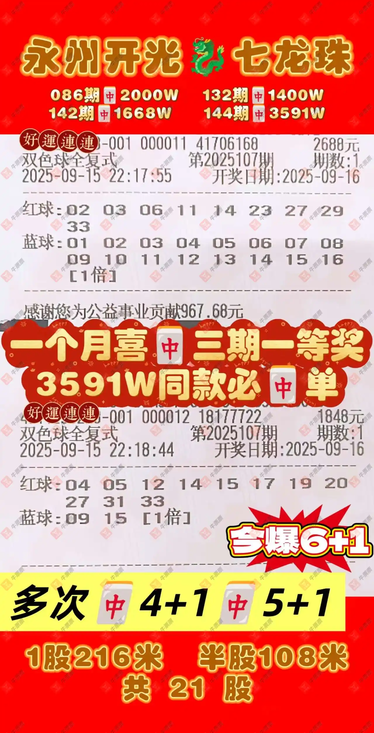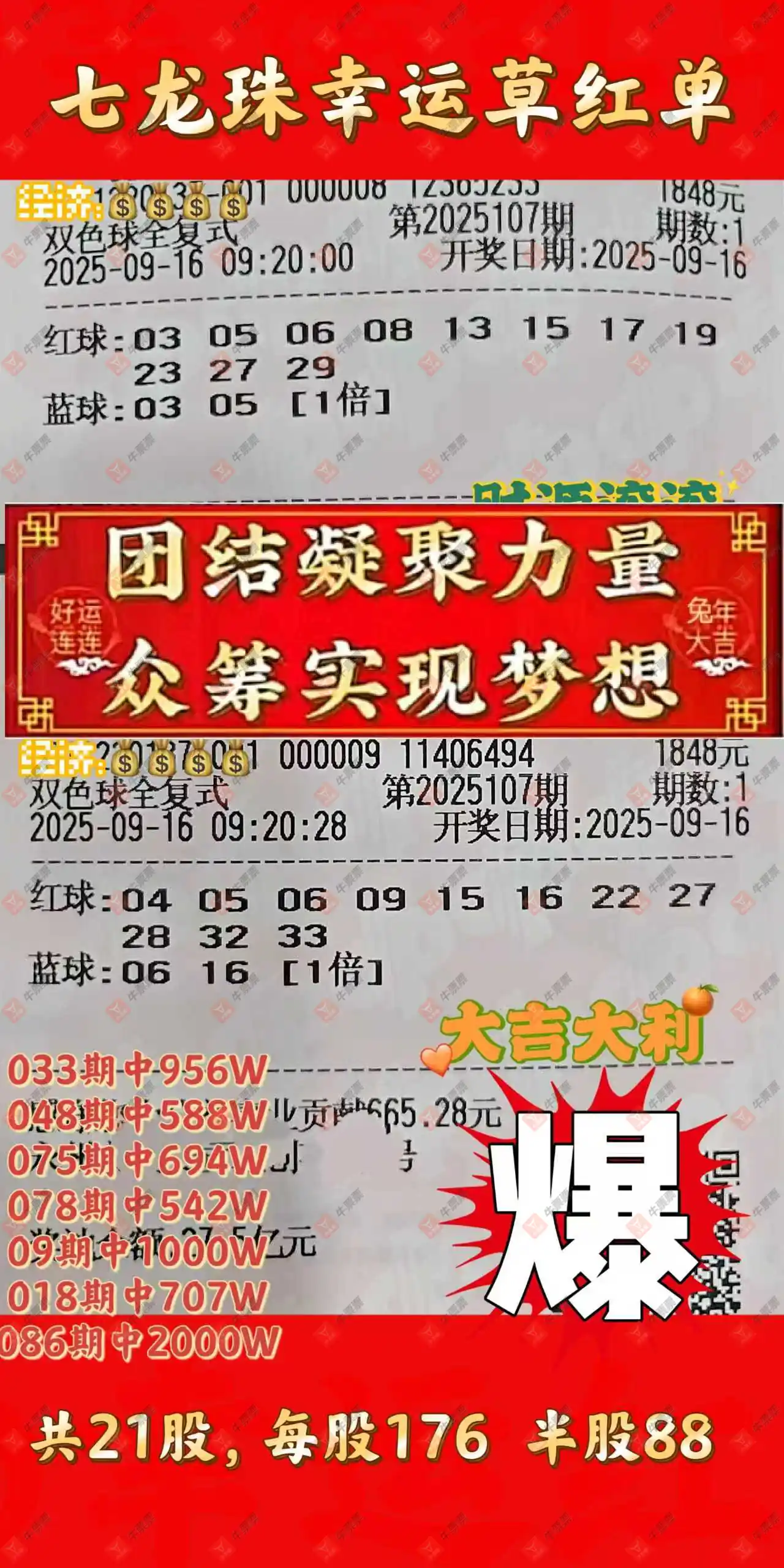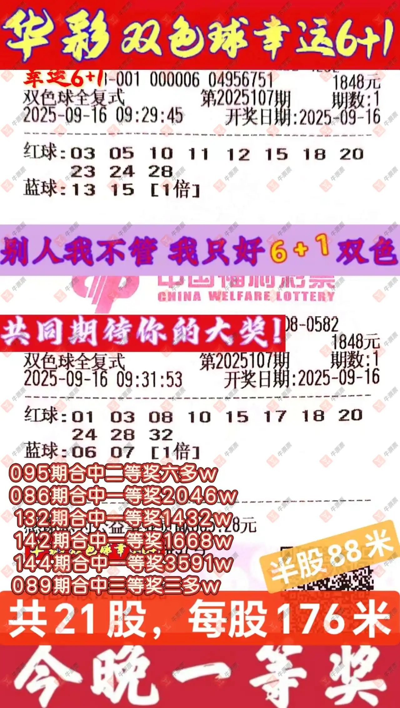 晒中107期双色球合买票