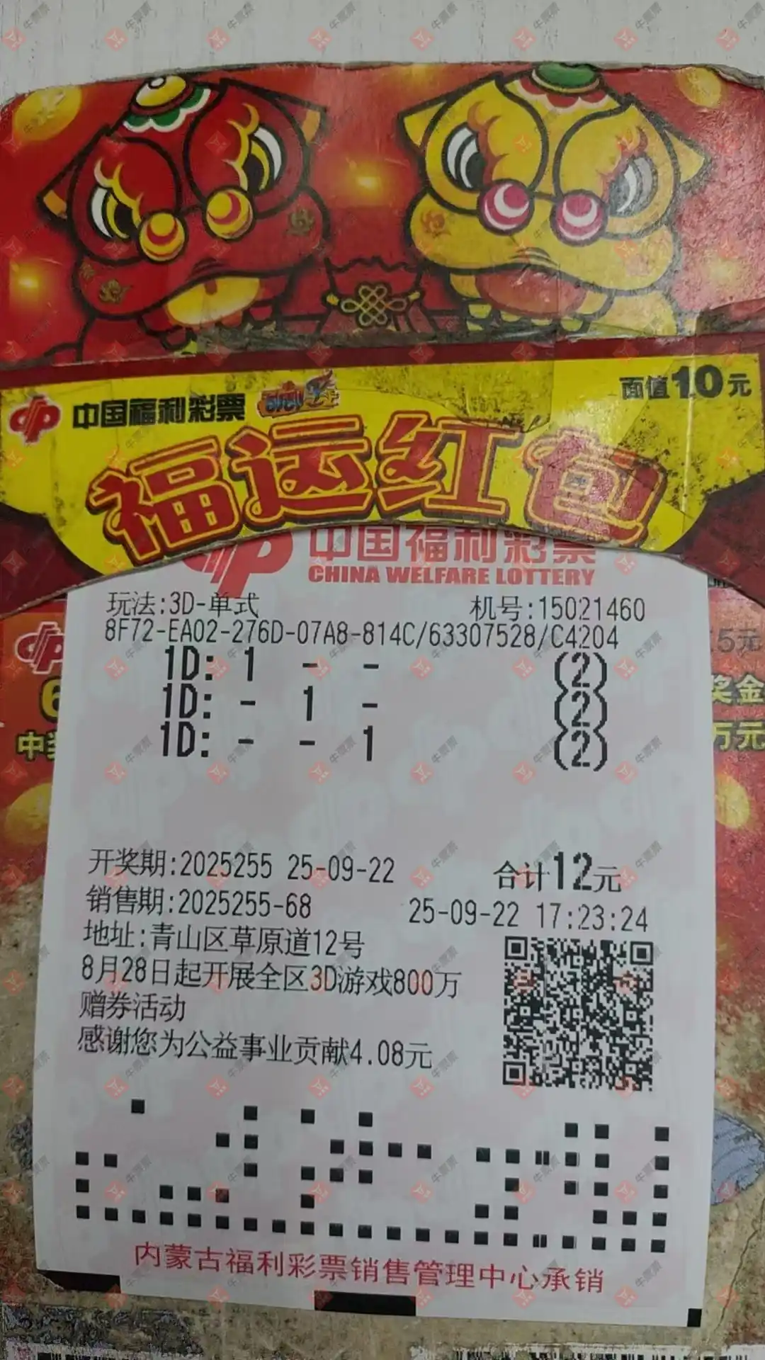 福彩3D 2025255期