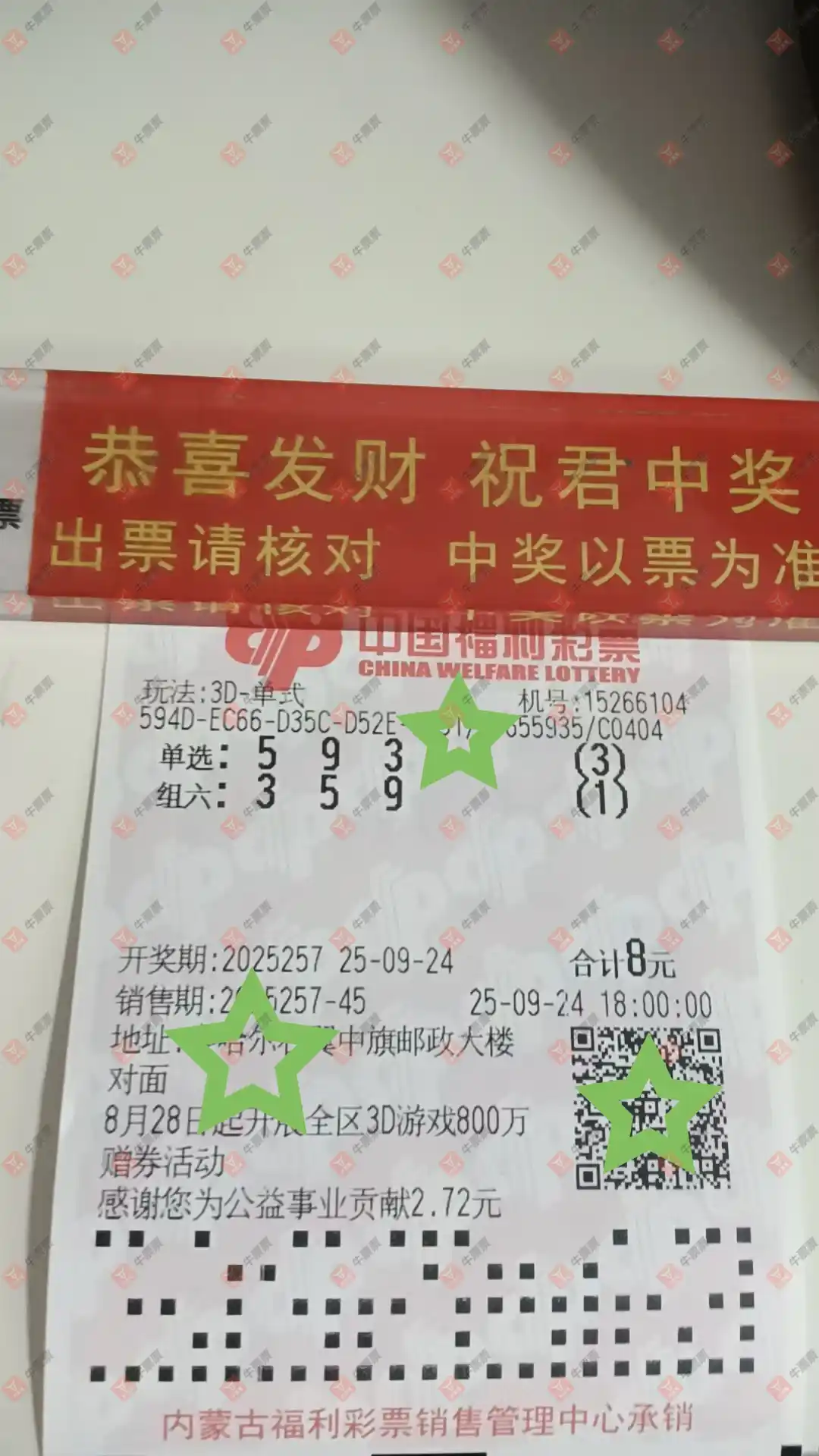 福彩3D 2025257期