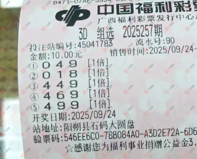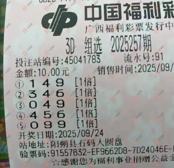 福彩3D 2025257期