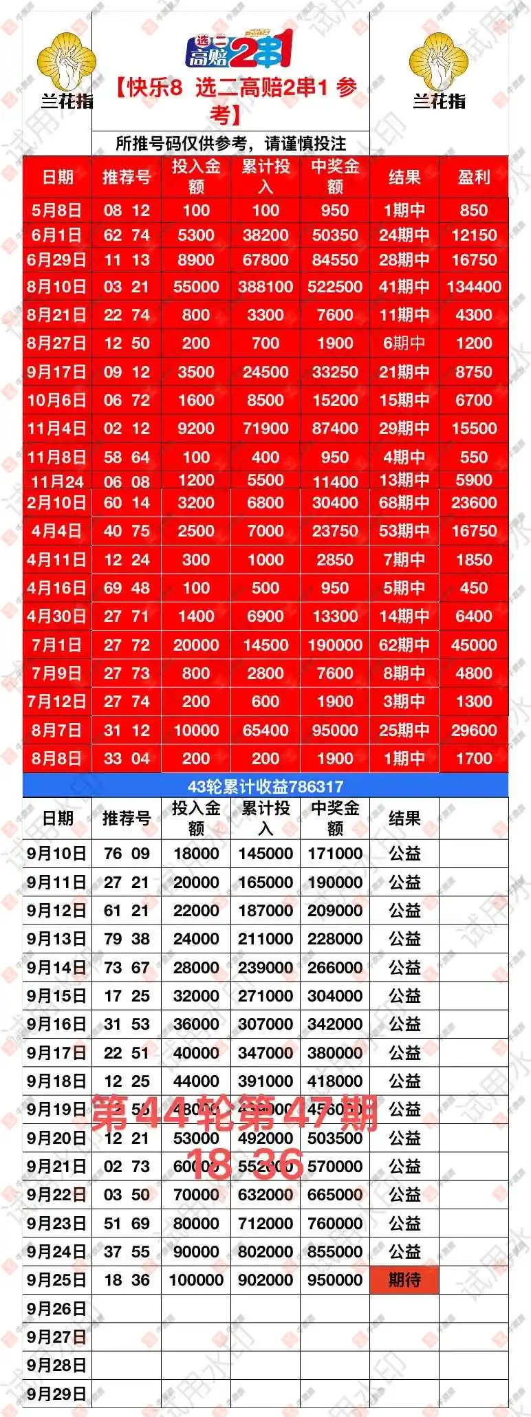 犀牛快8两码16 25计划第2天,兰花指两码18 36计划第47天。