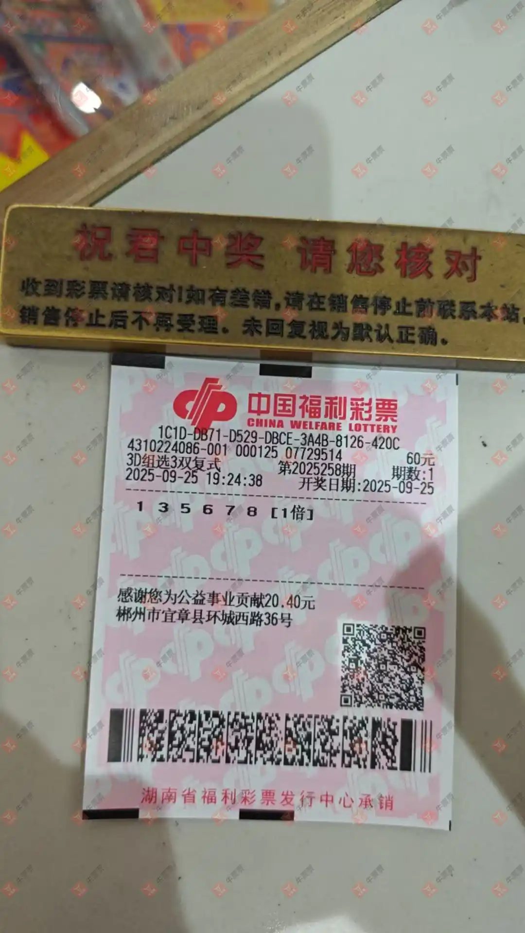 福彩3D 2025258期