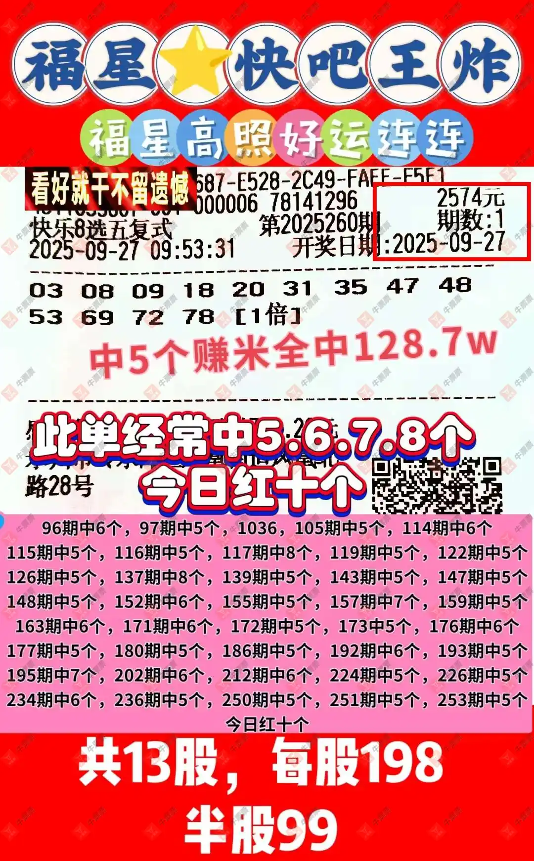 晒中260期快八合买票参考